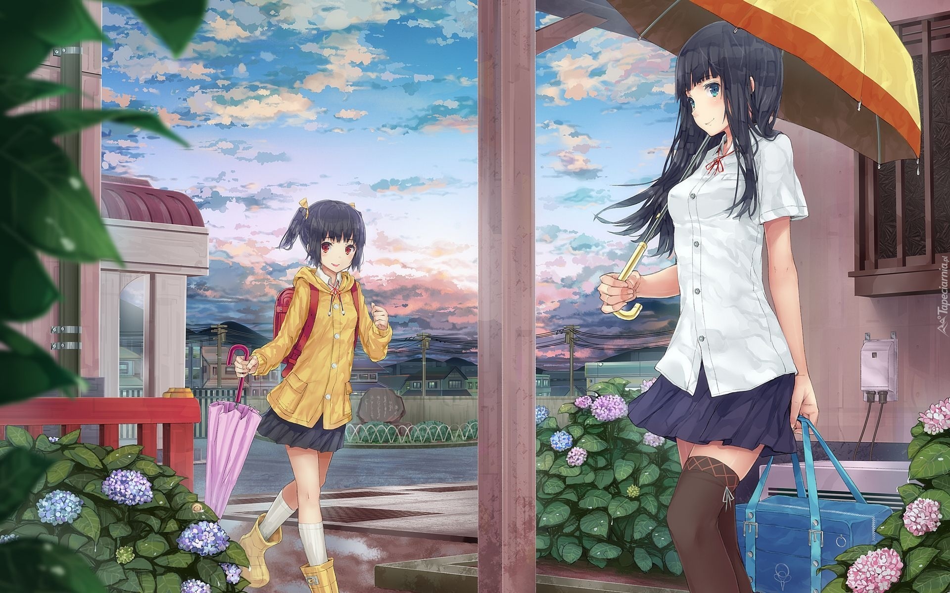 Edytor tapety: Dwie, Dziewczynki, Z, Parasolami