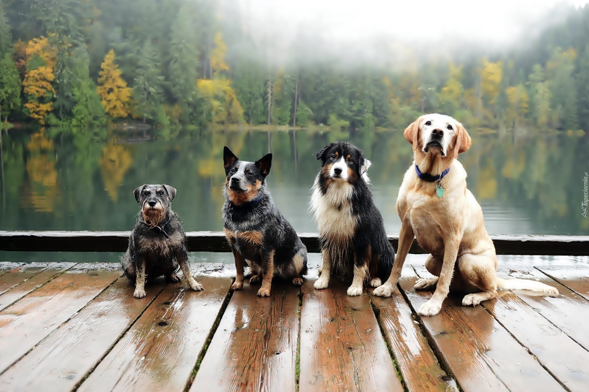 Edytor tapety: Cztery, Mokre, Pieski