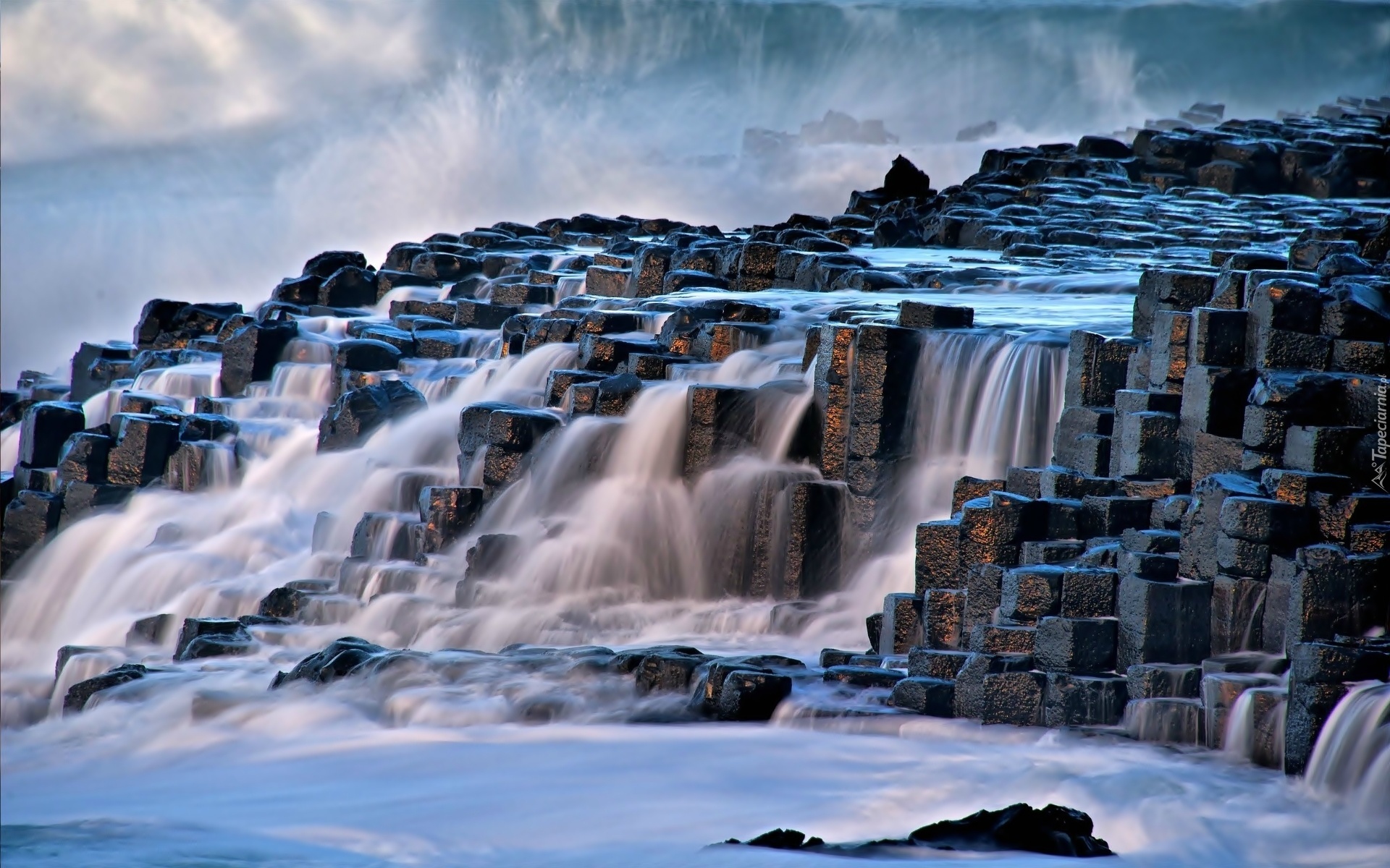 Edytor tapety: Wodospad, Na Grobli Olbrzyma, Irlandia Północna