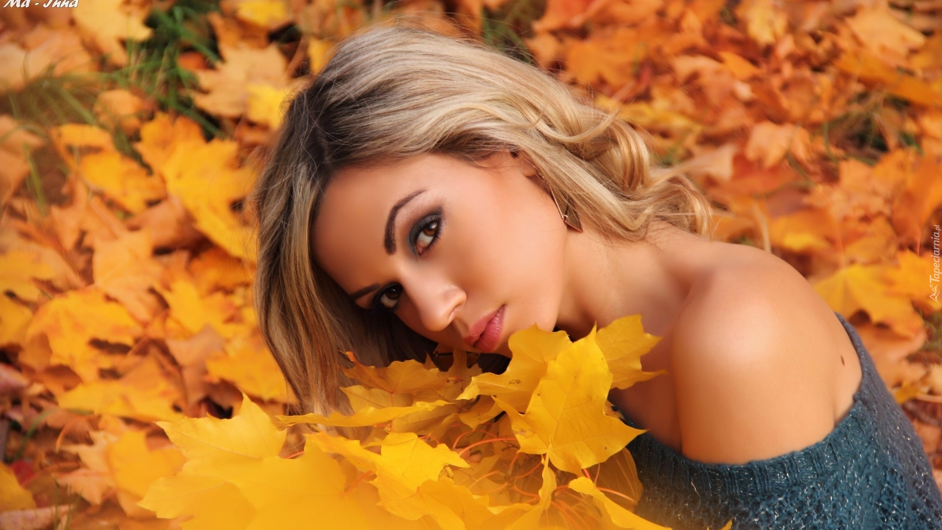 Edytor tapety: Dziewczyna, Blondynka, Modelka, Liście, Jesień