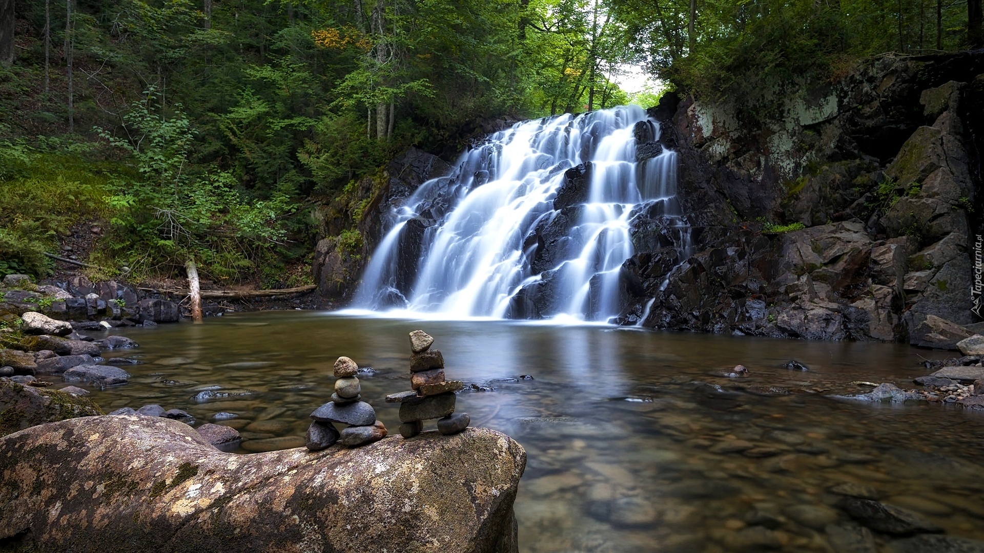 Edytor tapety: Wodospad, Skały, Rzeka, Drzewa