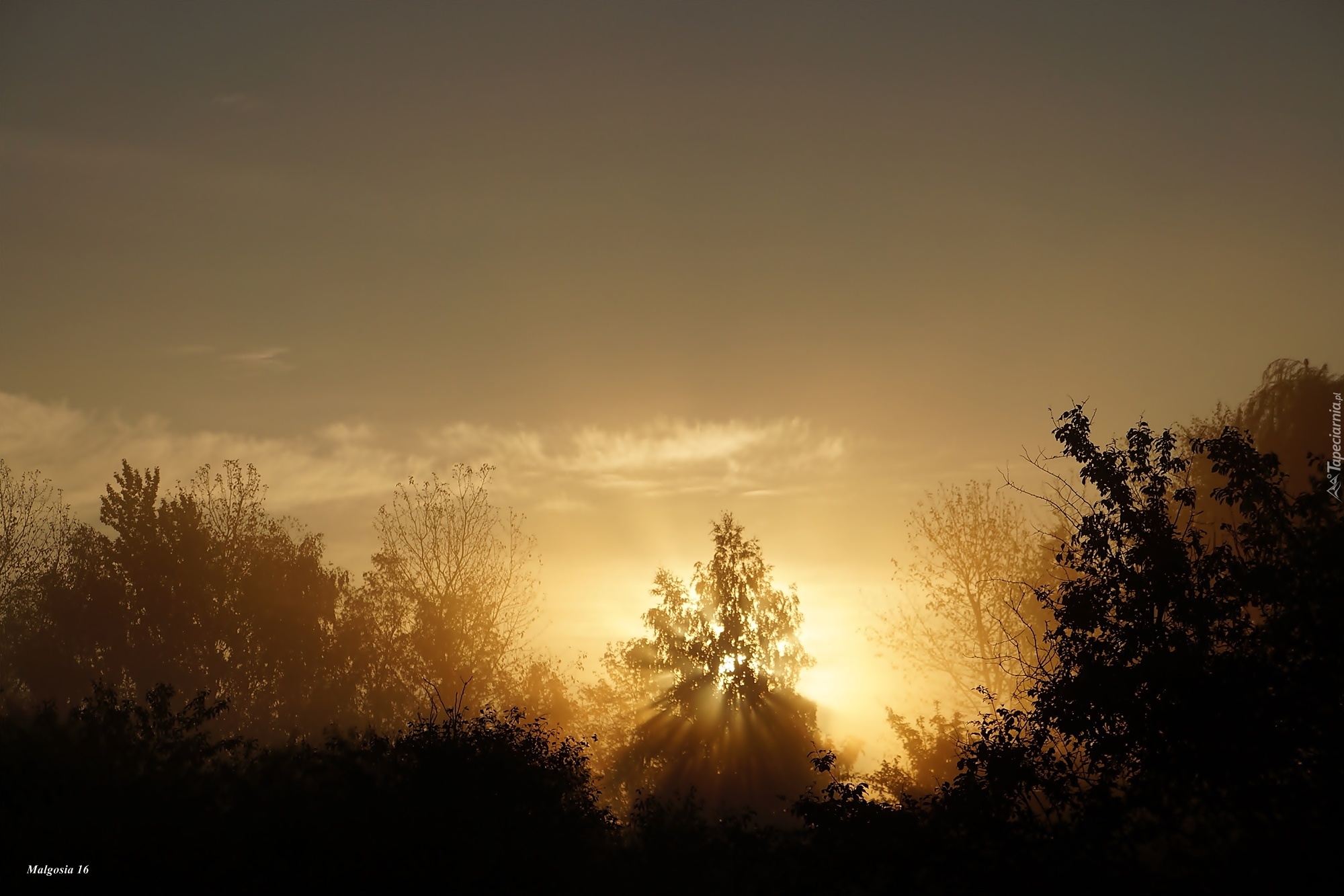 Edytor tapety: Przebijające Światło, Mgła, Drzewa