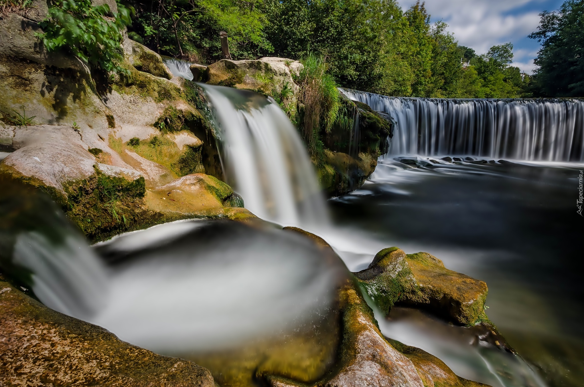 Edytor tapety: Wodospad, Las, Skały, Rzeka