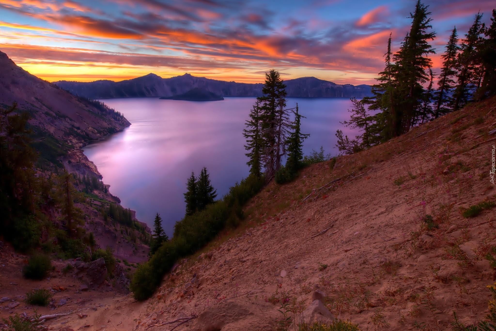 Edytor tapety: Góry, Jezioro, Świt, Drzewa