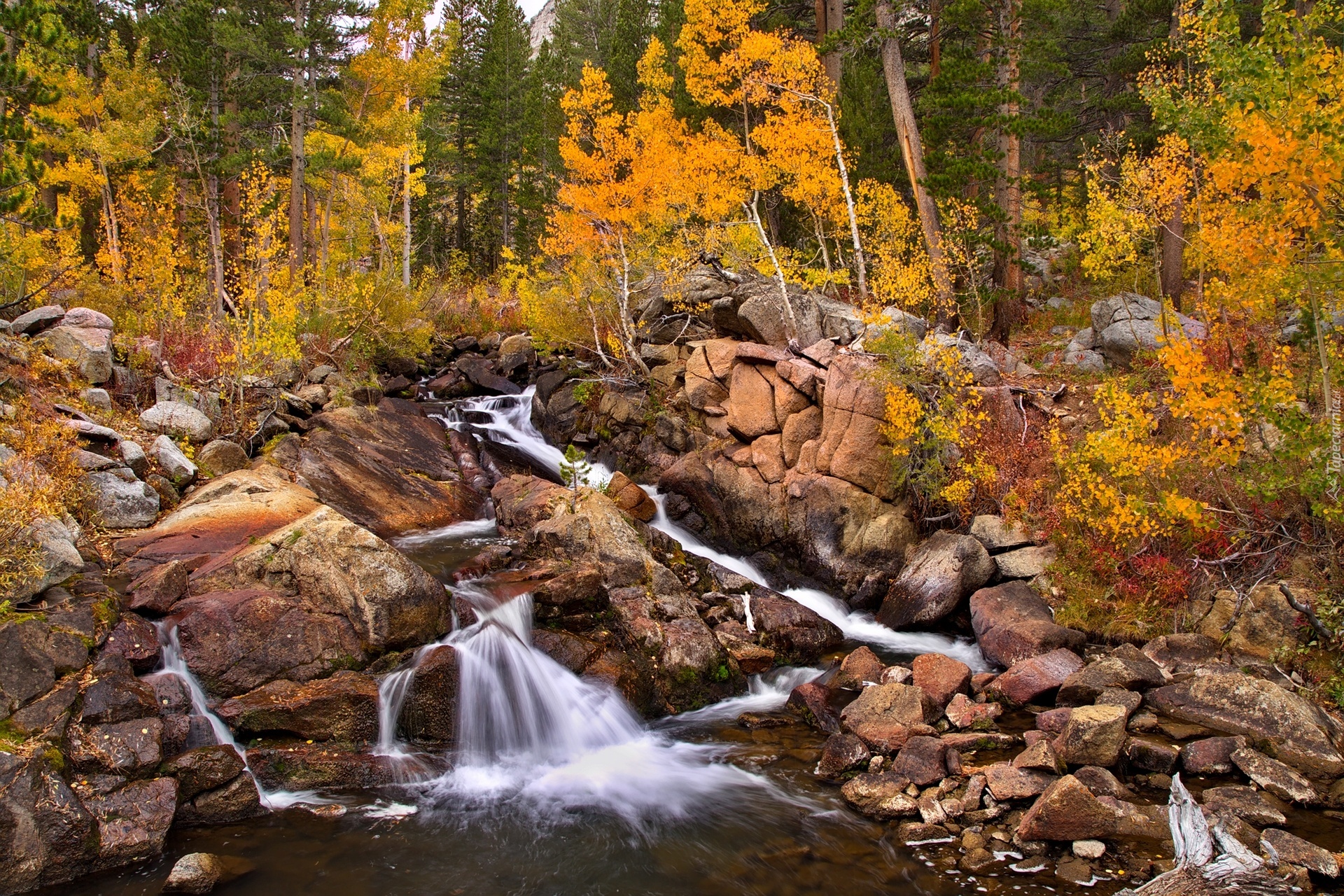 Edytor tapety: Jesień, Kamienie, Las, Wodospad