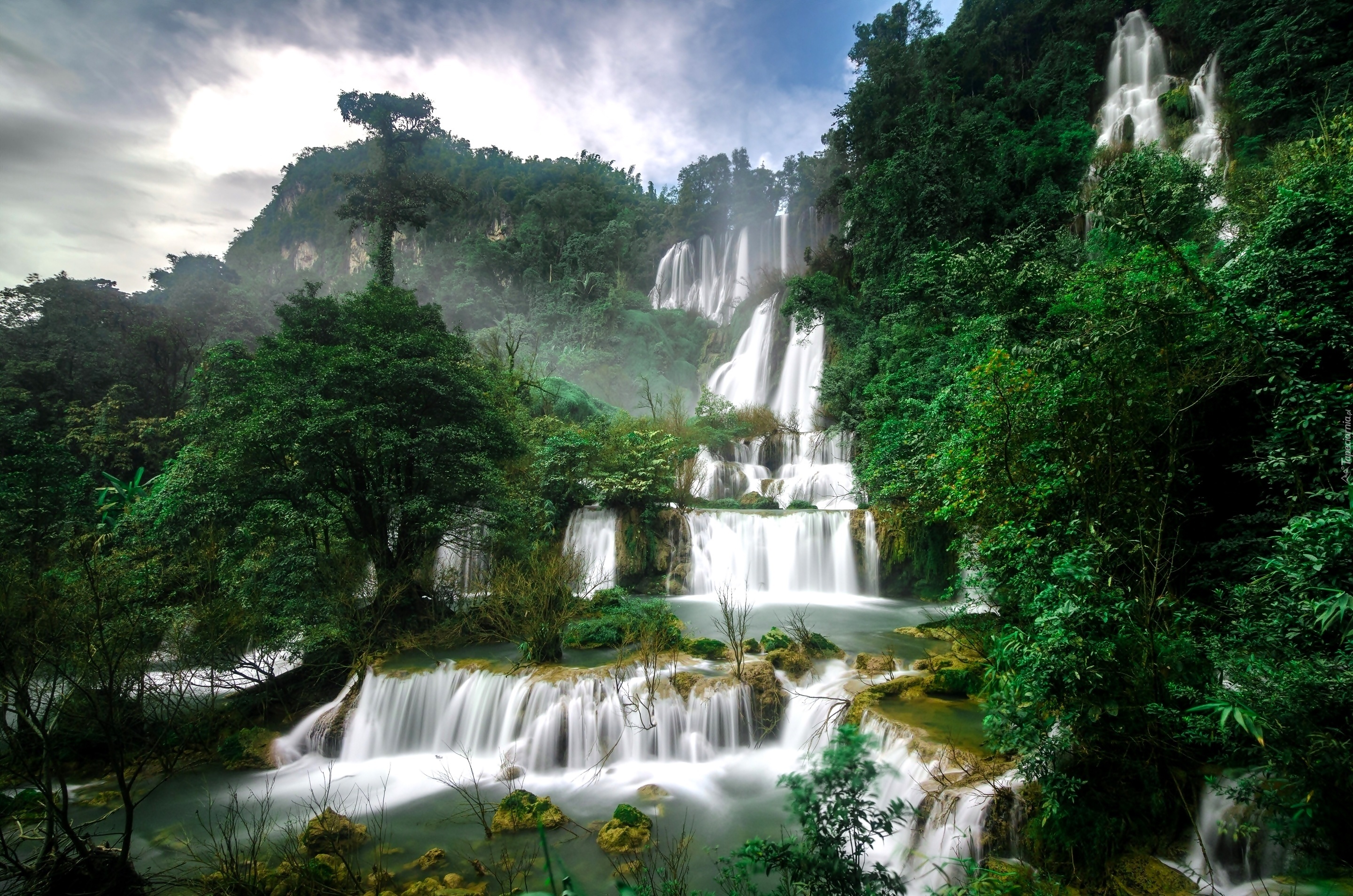 Edytor tapety: Wodospad, Thi Lo Su, Tajlandia, Kaskada, Drzewa