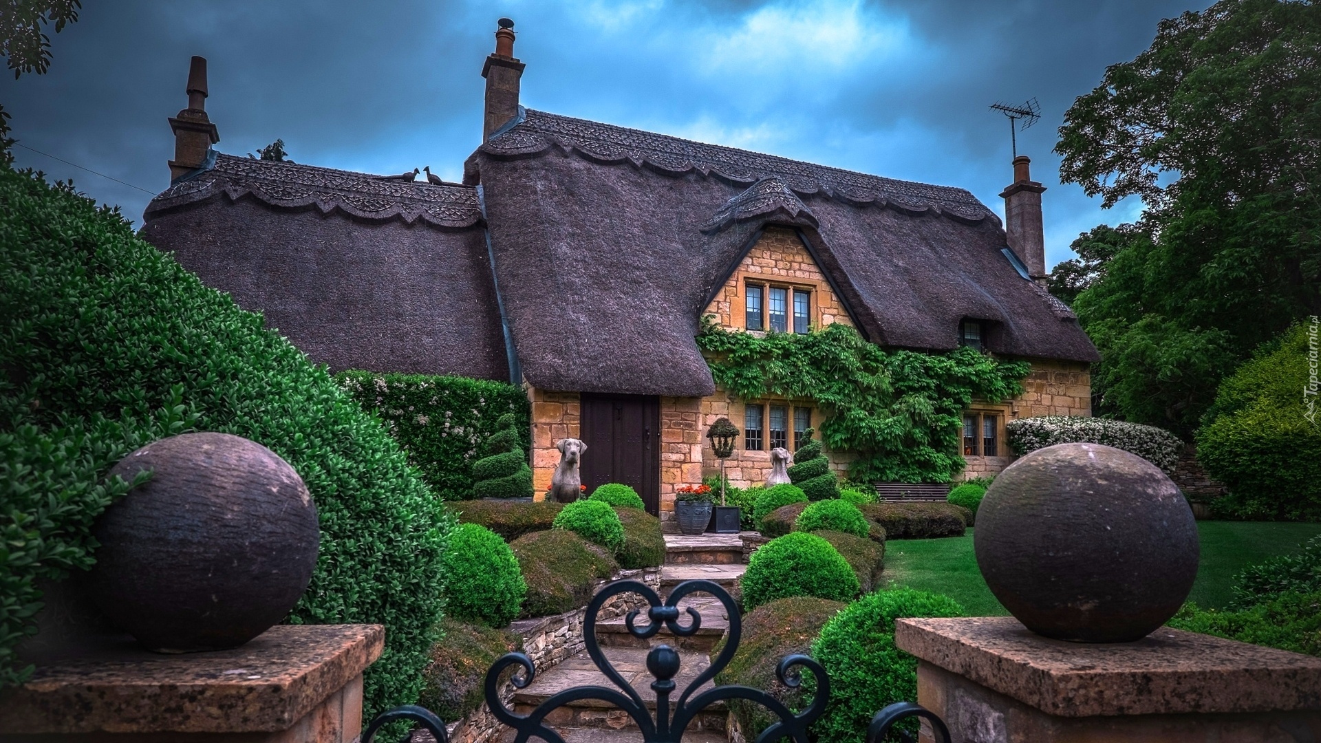 Edytor tapety: Anglia, Dom, Ogród, Pochmurny Dzień