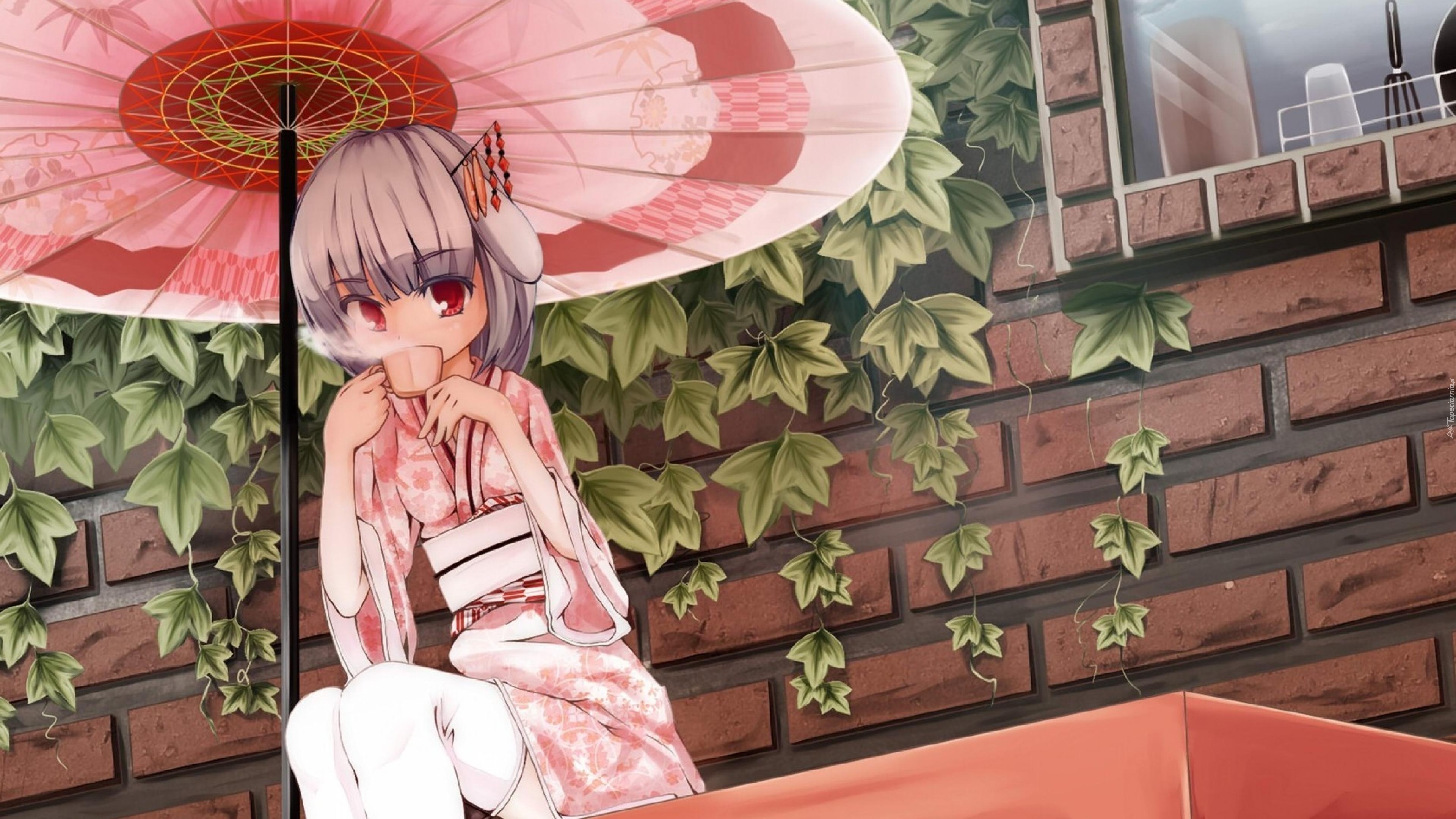Edytor tapety: Dziewczynka, Filiżanka, Parasolka