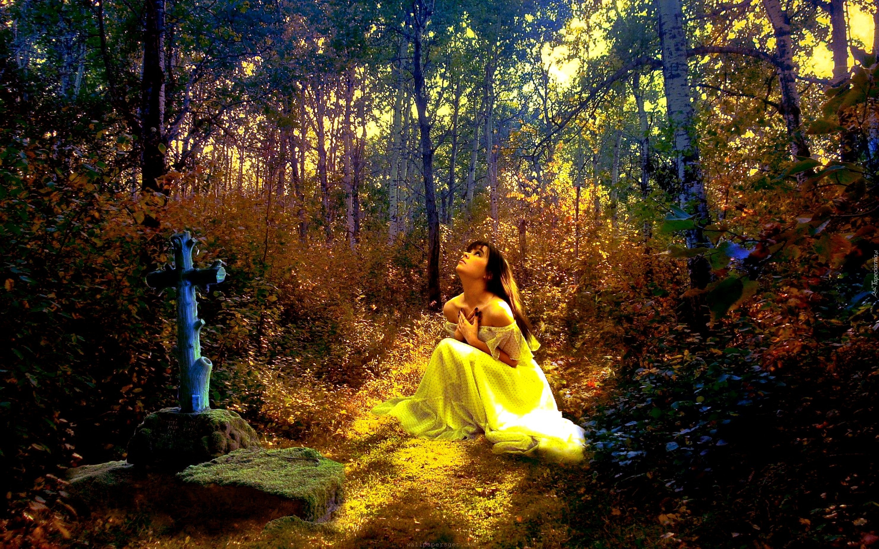 Edytor tapety: Grób, Las, Kobieta