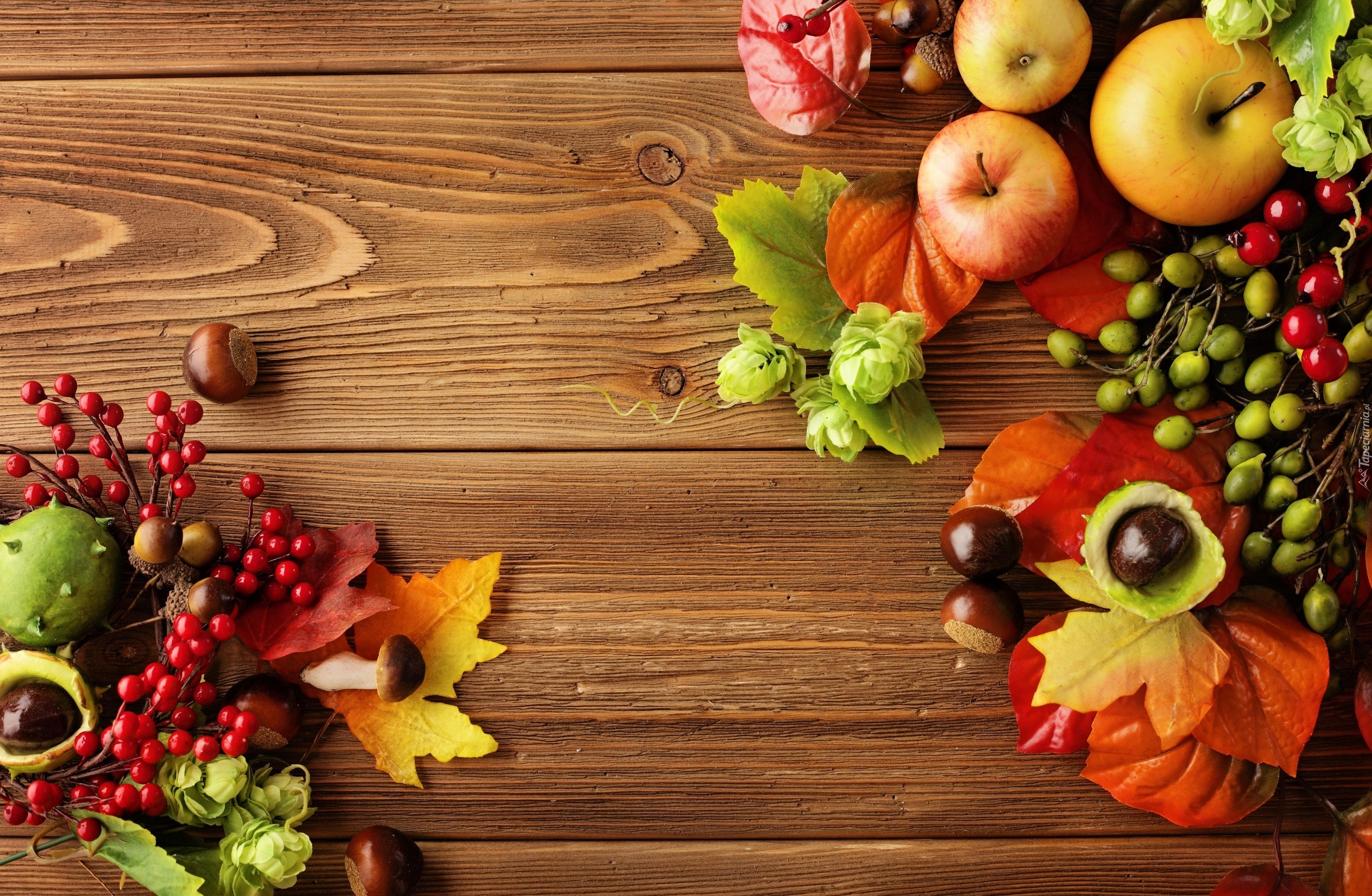 Edytor tapety: Liście, Jabłka, Kasztany, Grzybki, Jesienne, Zbiory