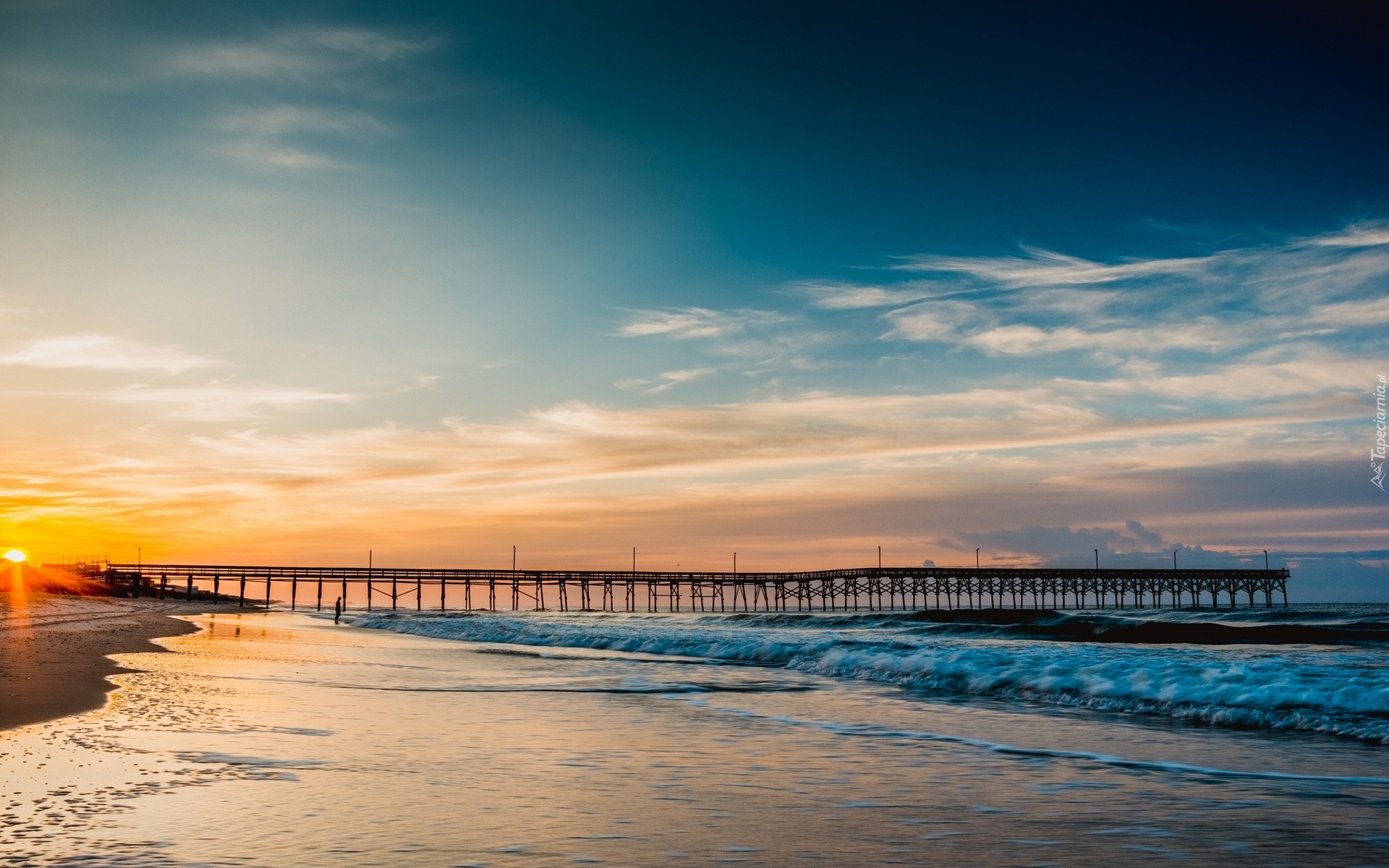 Edytor tapety: Morze, Molo, Plaża, Zachód Słońca, Lato, Niebo