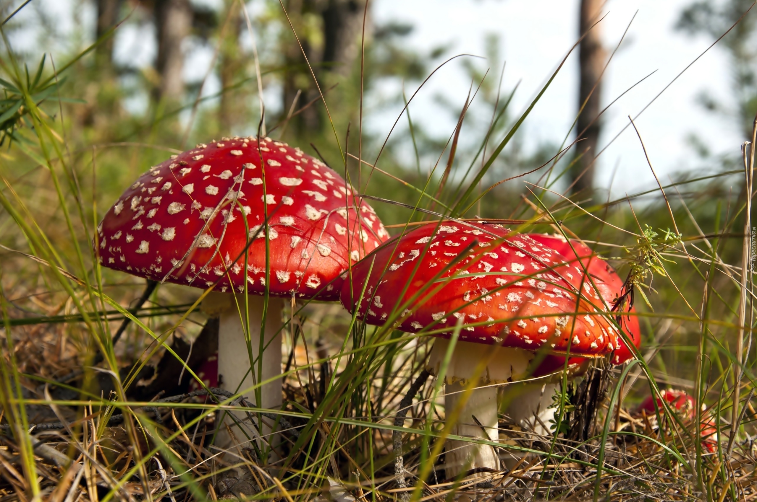 Edytor tapety: Grzyby, Muchomory, Ściółka, Leśna