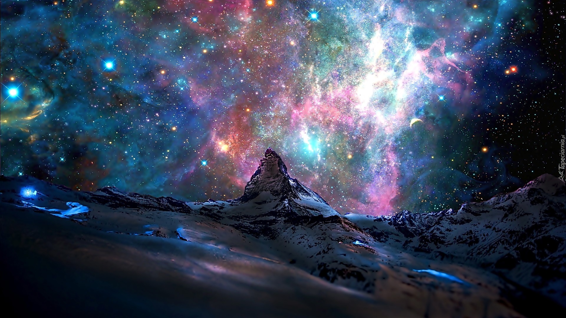 Edytor tapety: Góry, Alpy, Szczyt Matterhorn, Mgławica, Gwiazdy