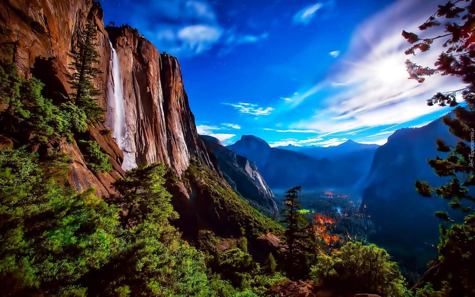 Edytor tapety: Stany Zjednoczone, Stan Kalifornia, Park Narodowy Yosemite, Góry, Drzewa, Wodospad