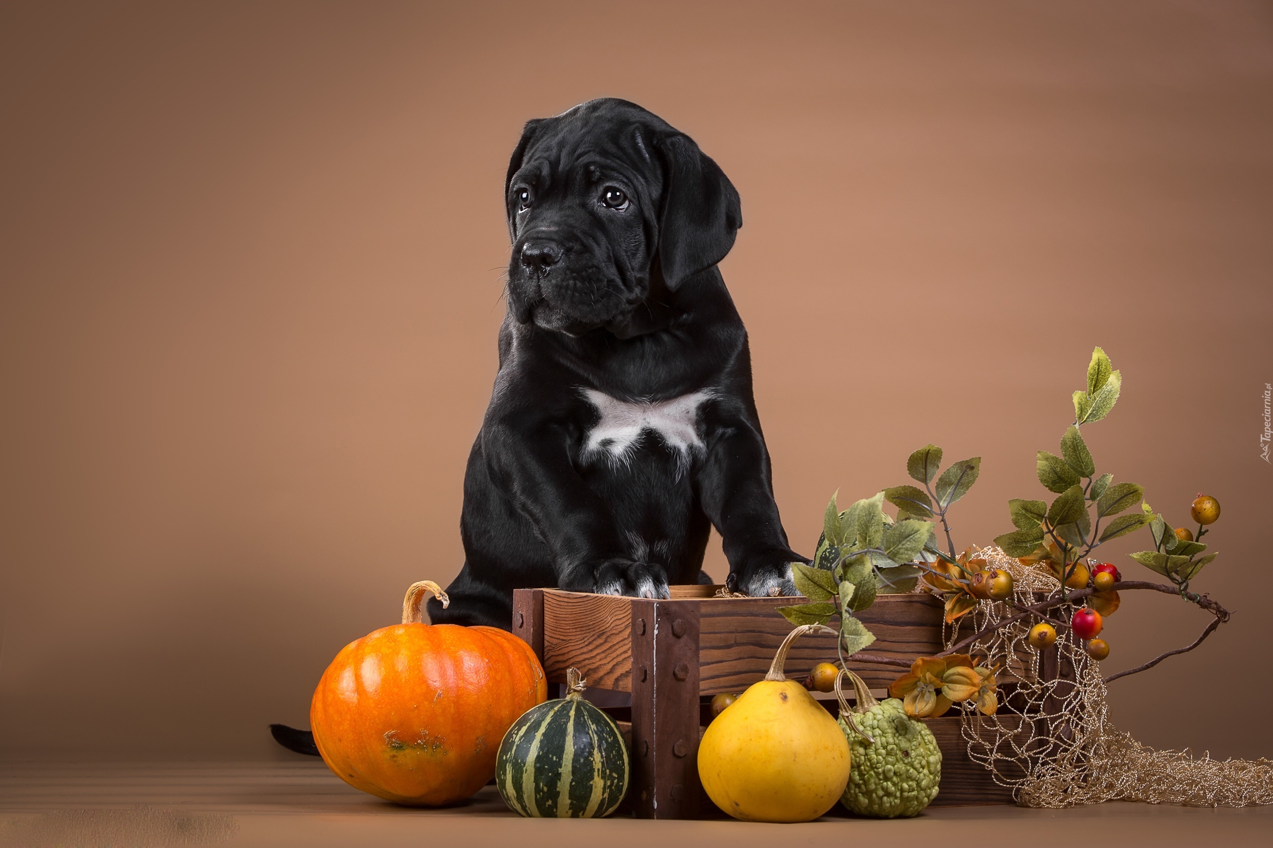Edytor tapety: Pies, Dynie, Gałązka