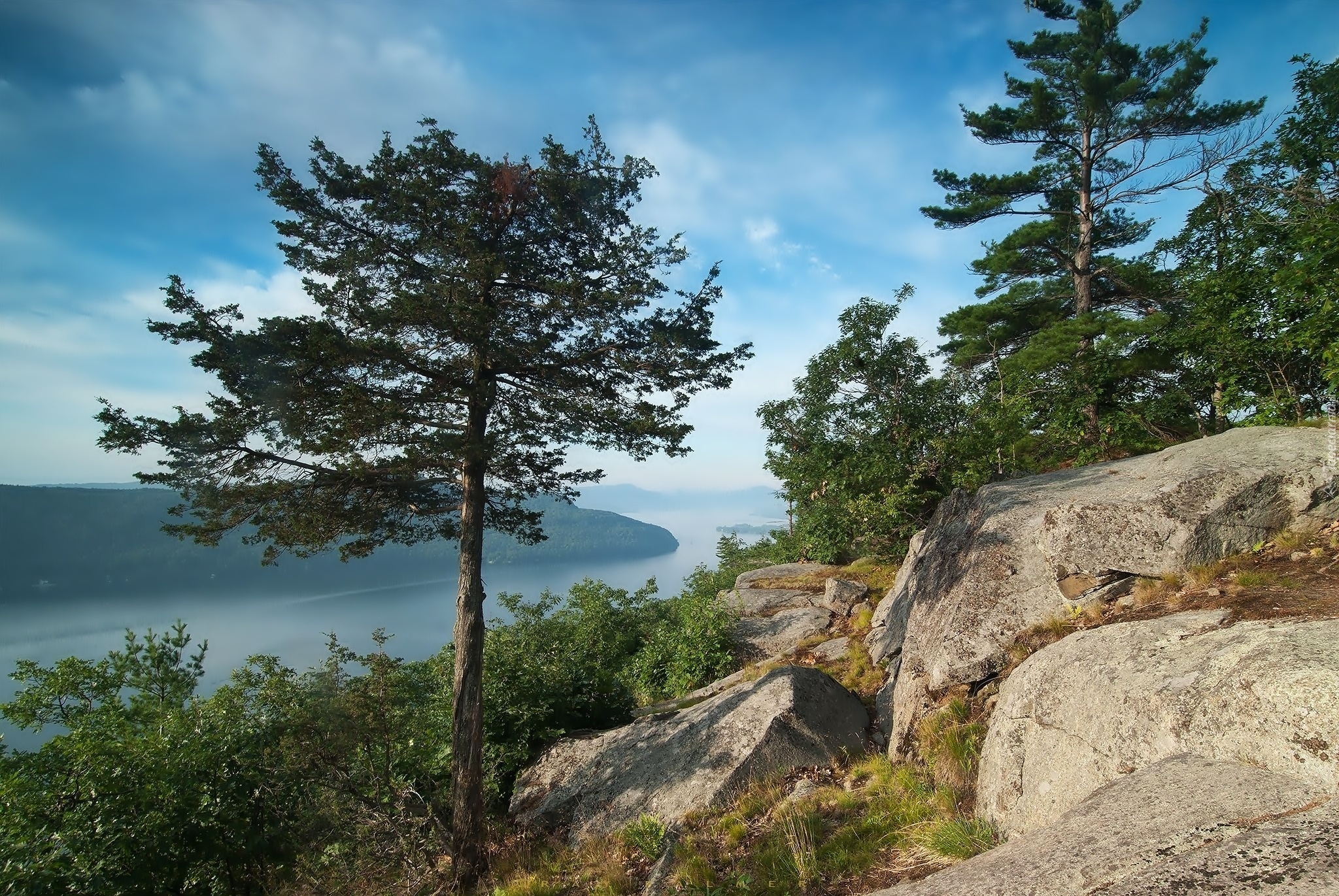 Edytor tapety: Jezioro, Las, Skały