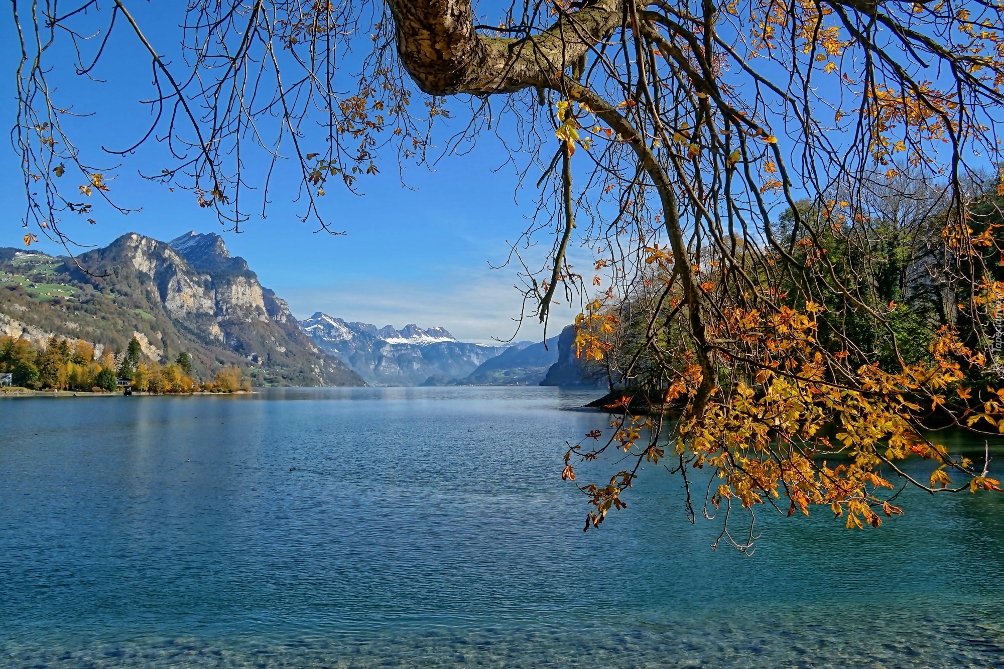 Edytor tapety: Jezioro, Góry, Drzewo, Jesień