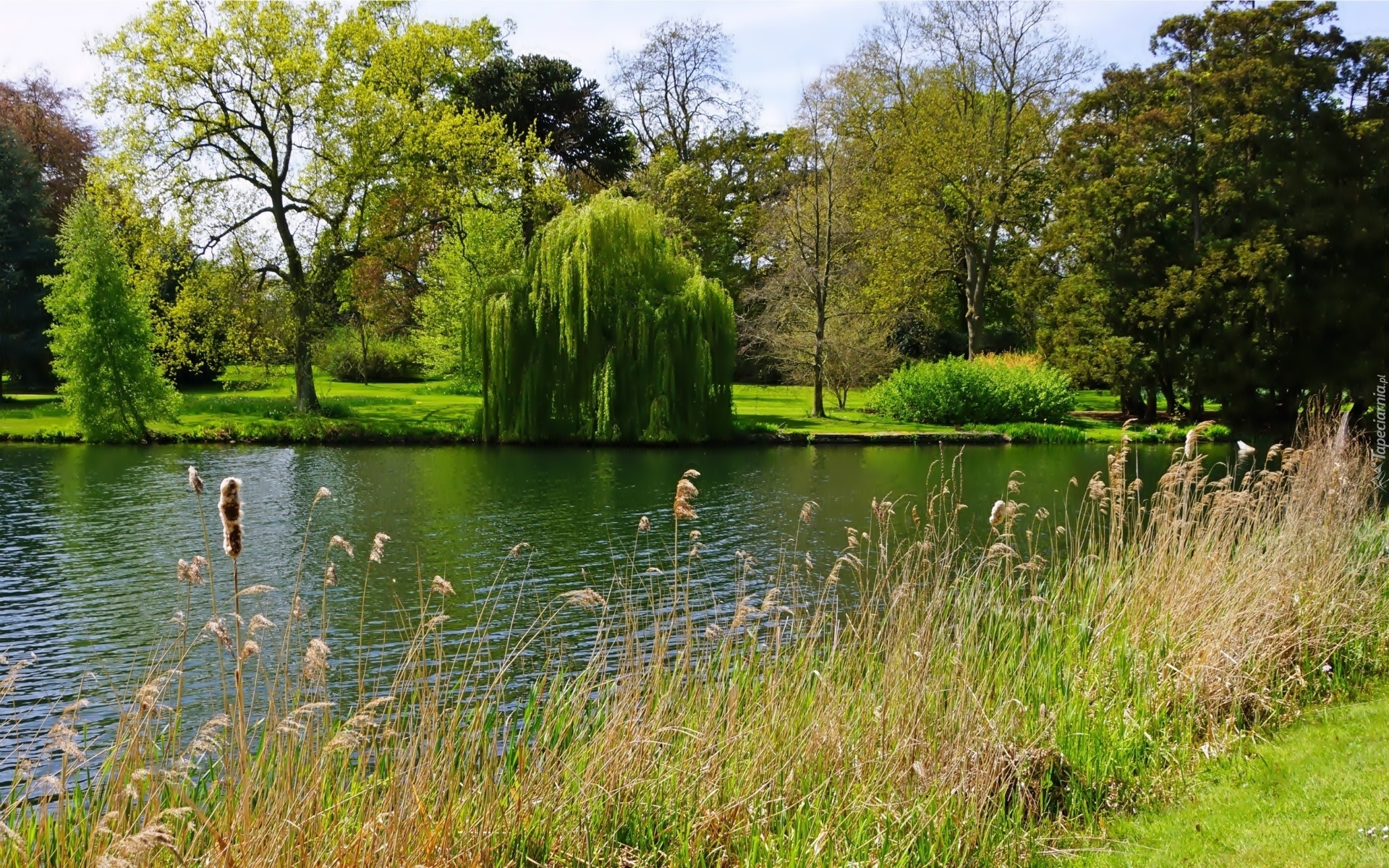 Edytor tapety: Park, Staw, Drzewa, Trawy