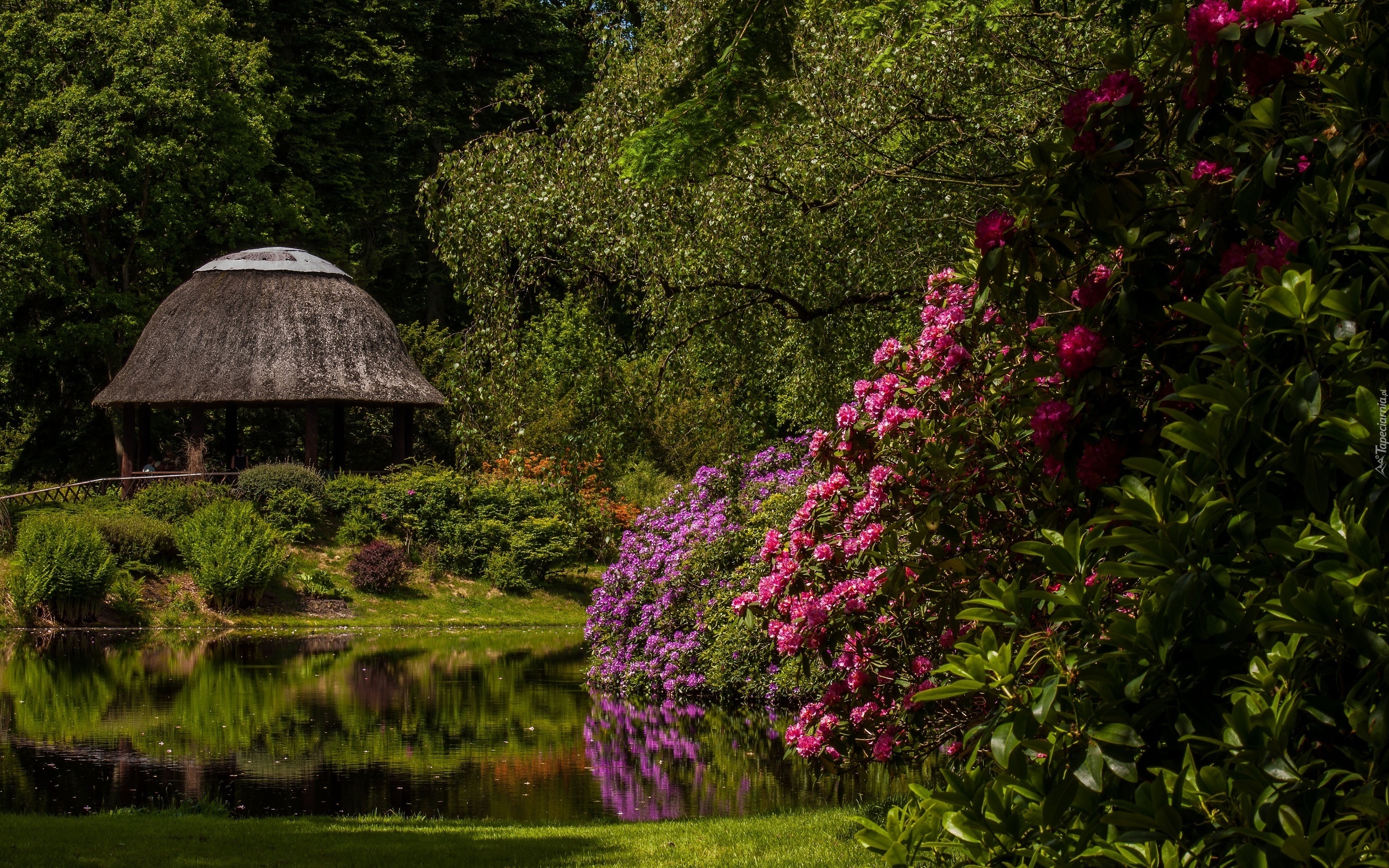 Edytor tapety: Park, Altana, Azalia, Różanecznik, Staw