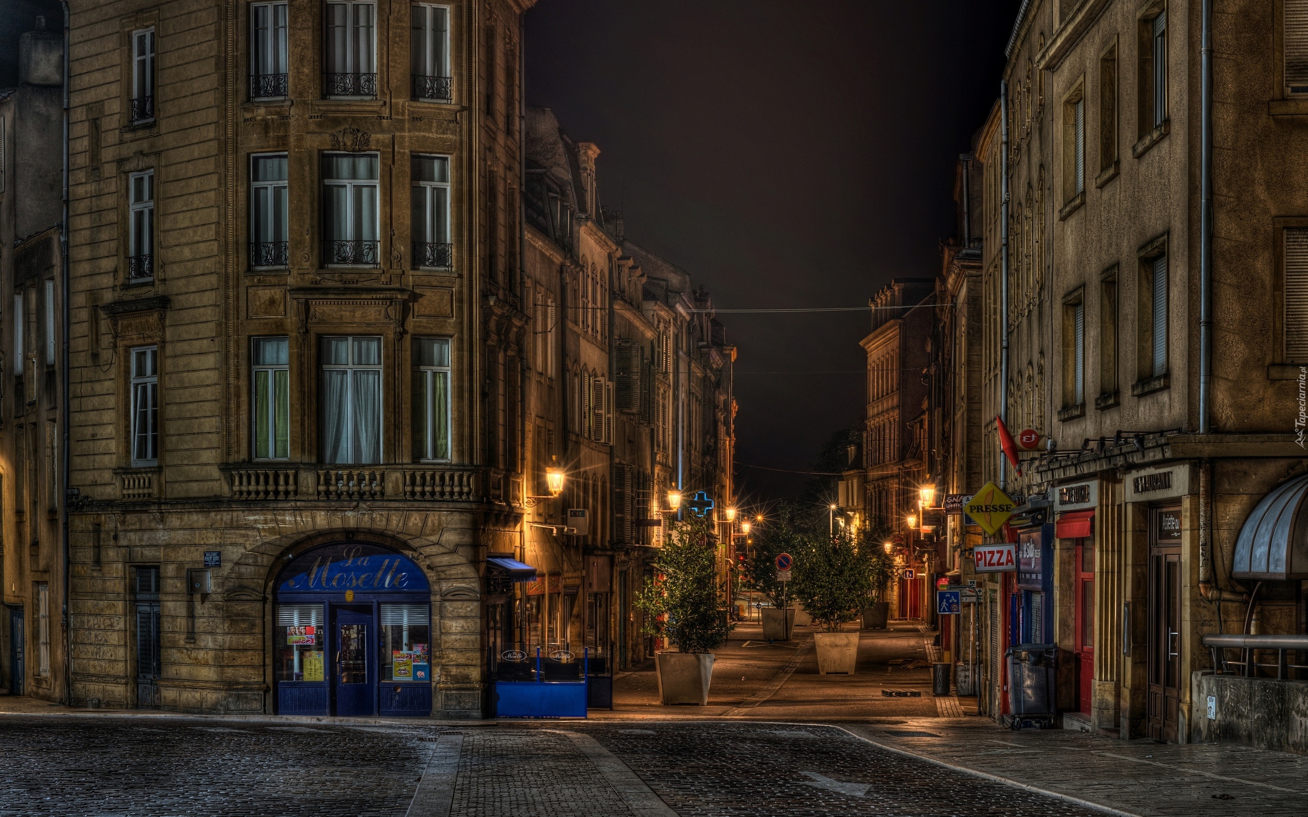 Edytor tapety: Miasto, Noc, Domy, Ulica