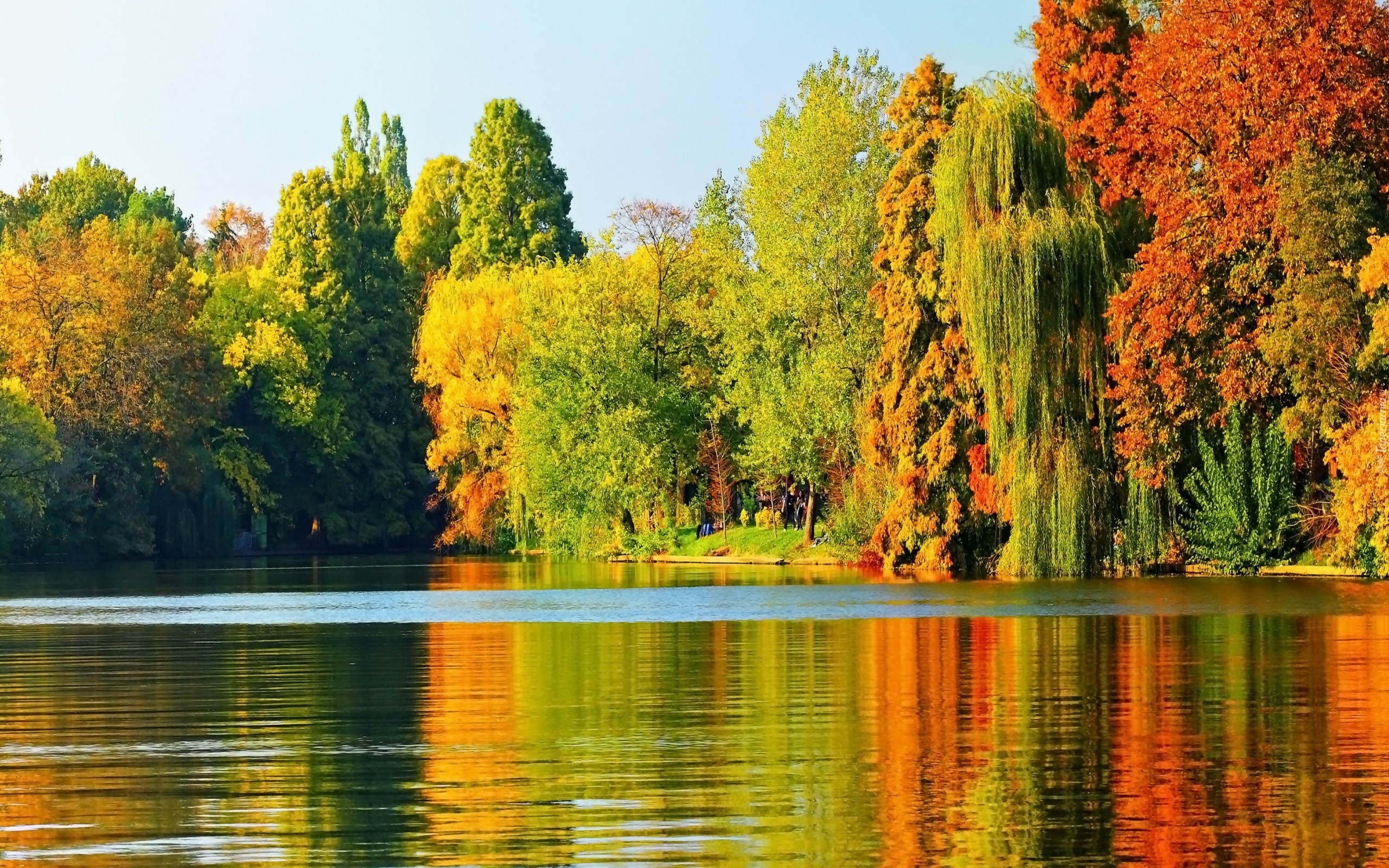 Edytor tapety: Park, Staw, Drzewa, Jesień