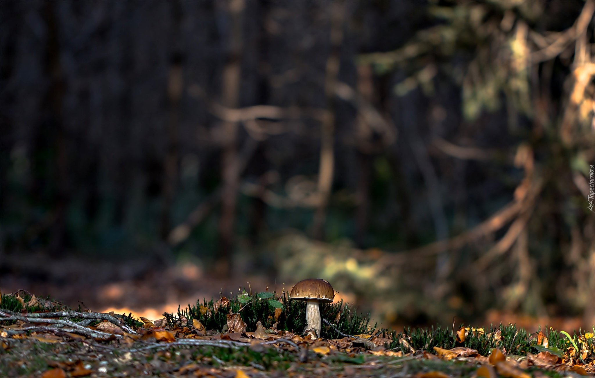 Edytor tapety: Grzyb, Borowik, Ściółka, Las