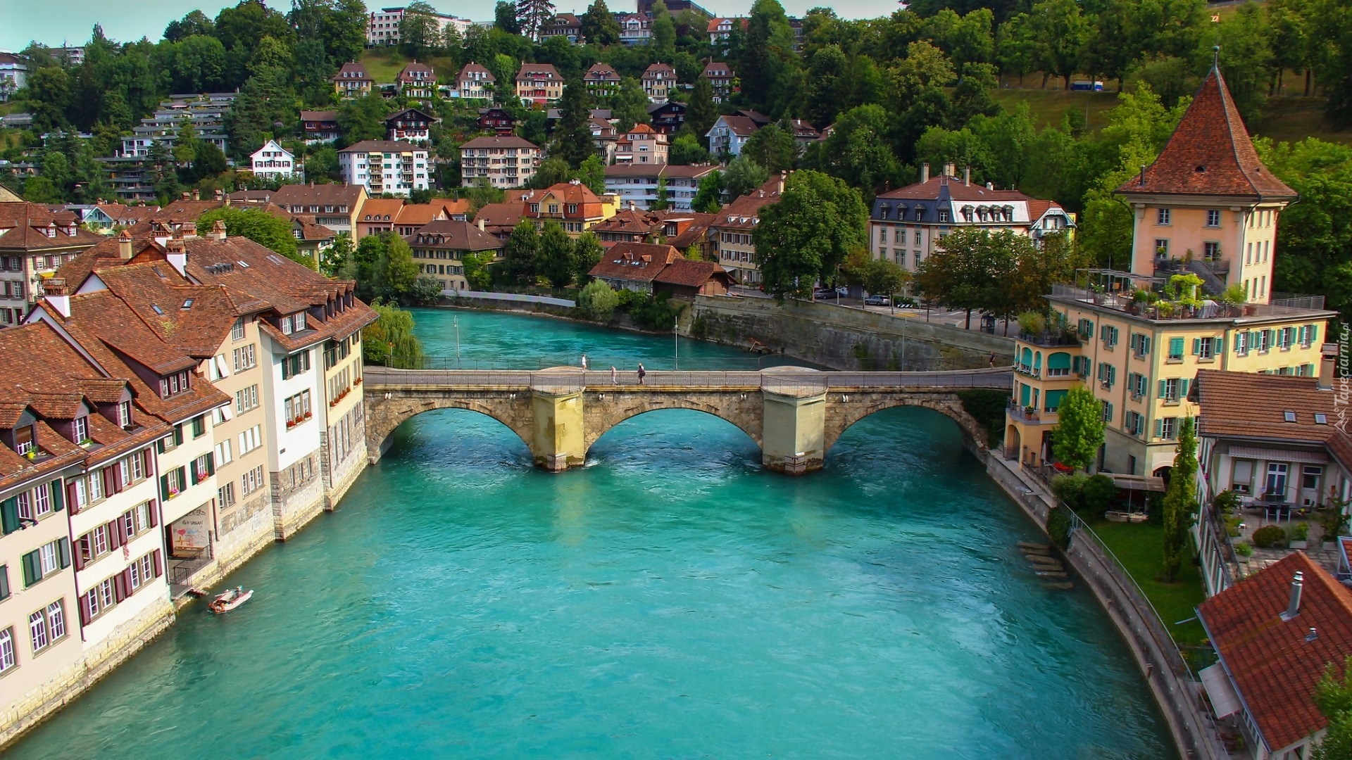 Edytor tapety: Szwajcaria, Miasto, Rzeka, Most