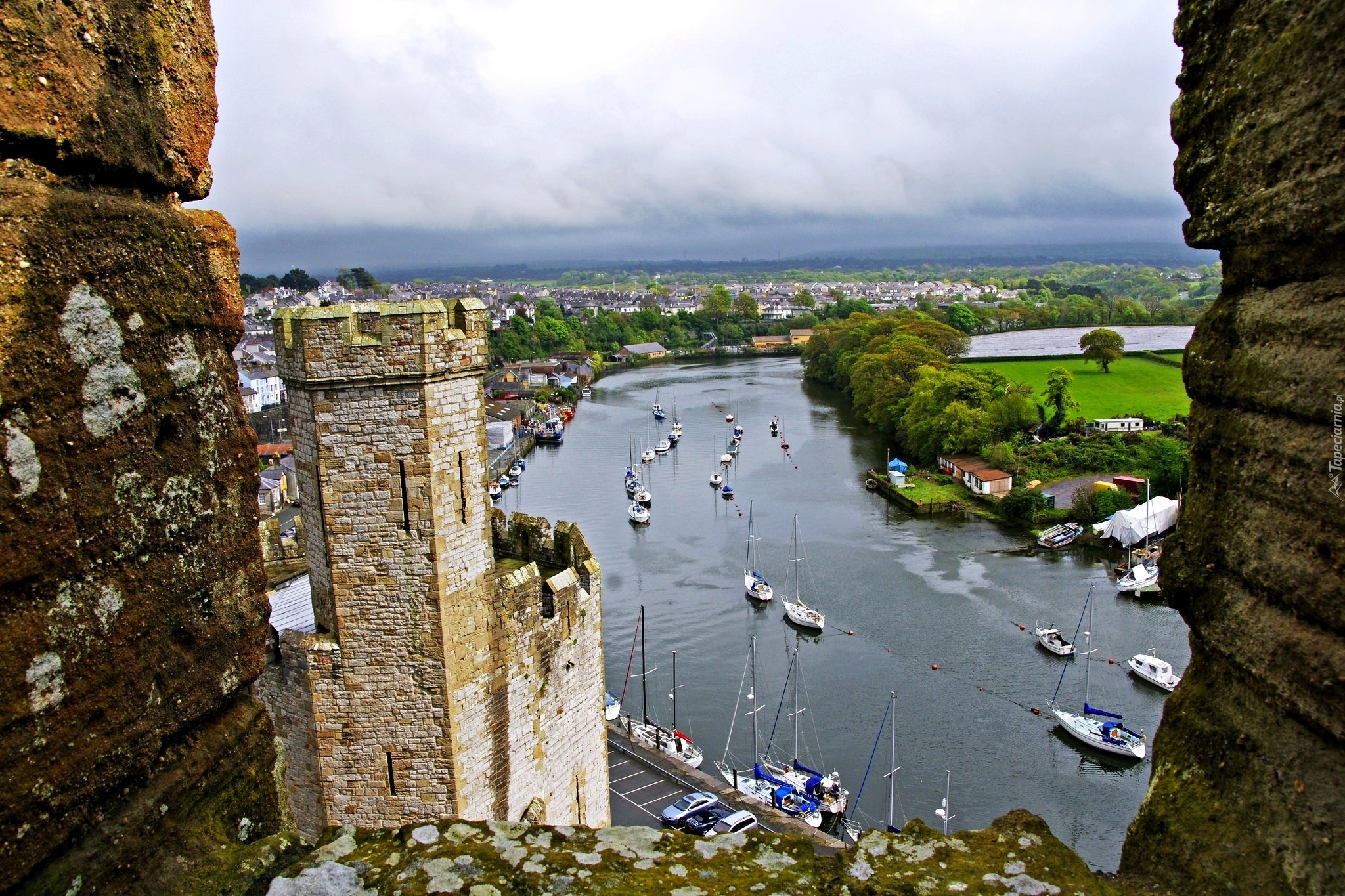 Edytor tapety: Zamek Caernarfon, Rzeka, Krajobraz, Walia, Szkocja