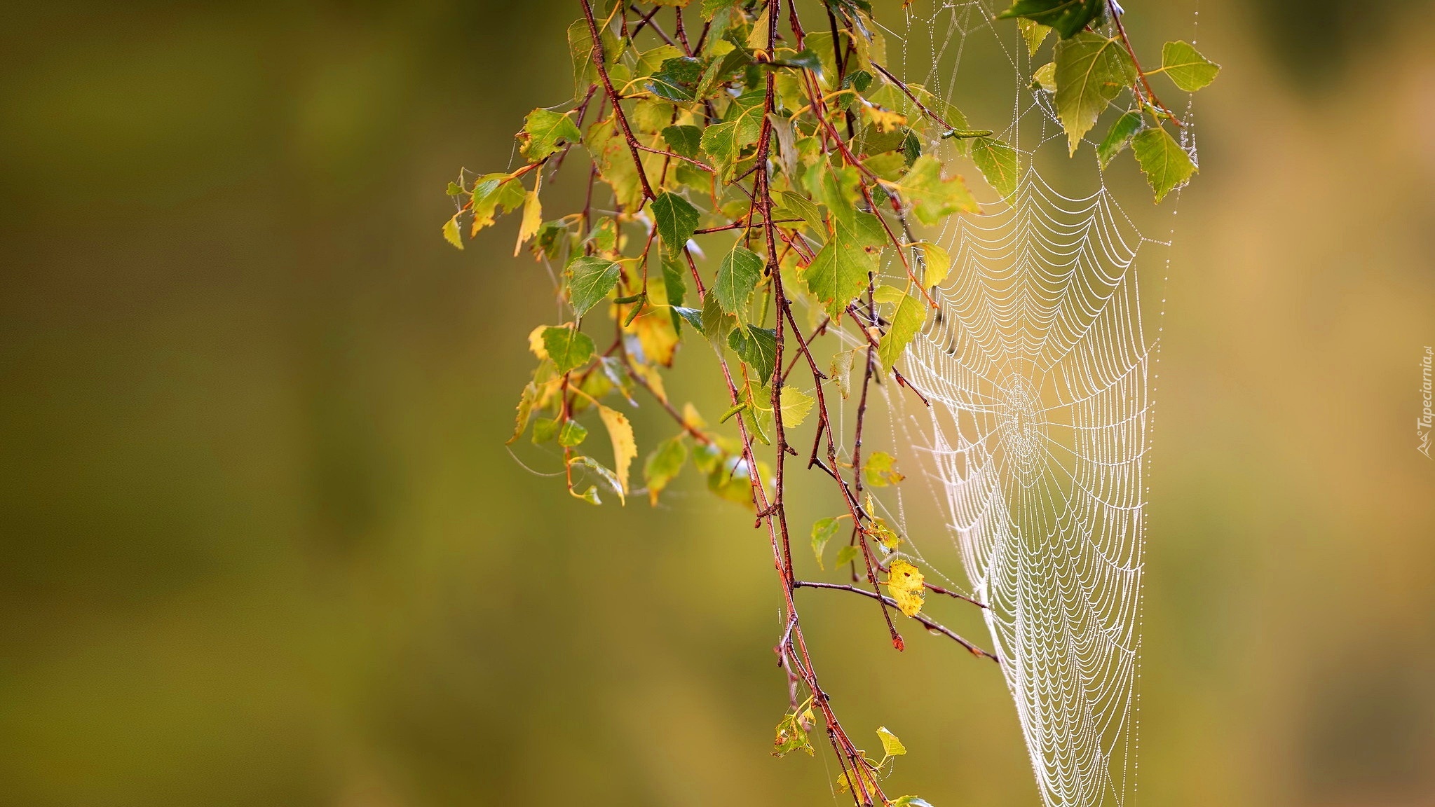 Edytor tapety: Gałązka, Liście, Pajęczyna, Jesień