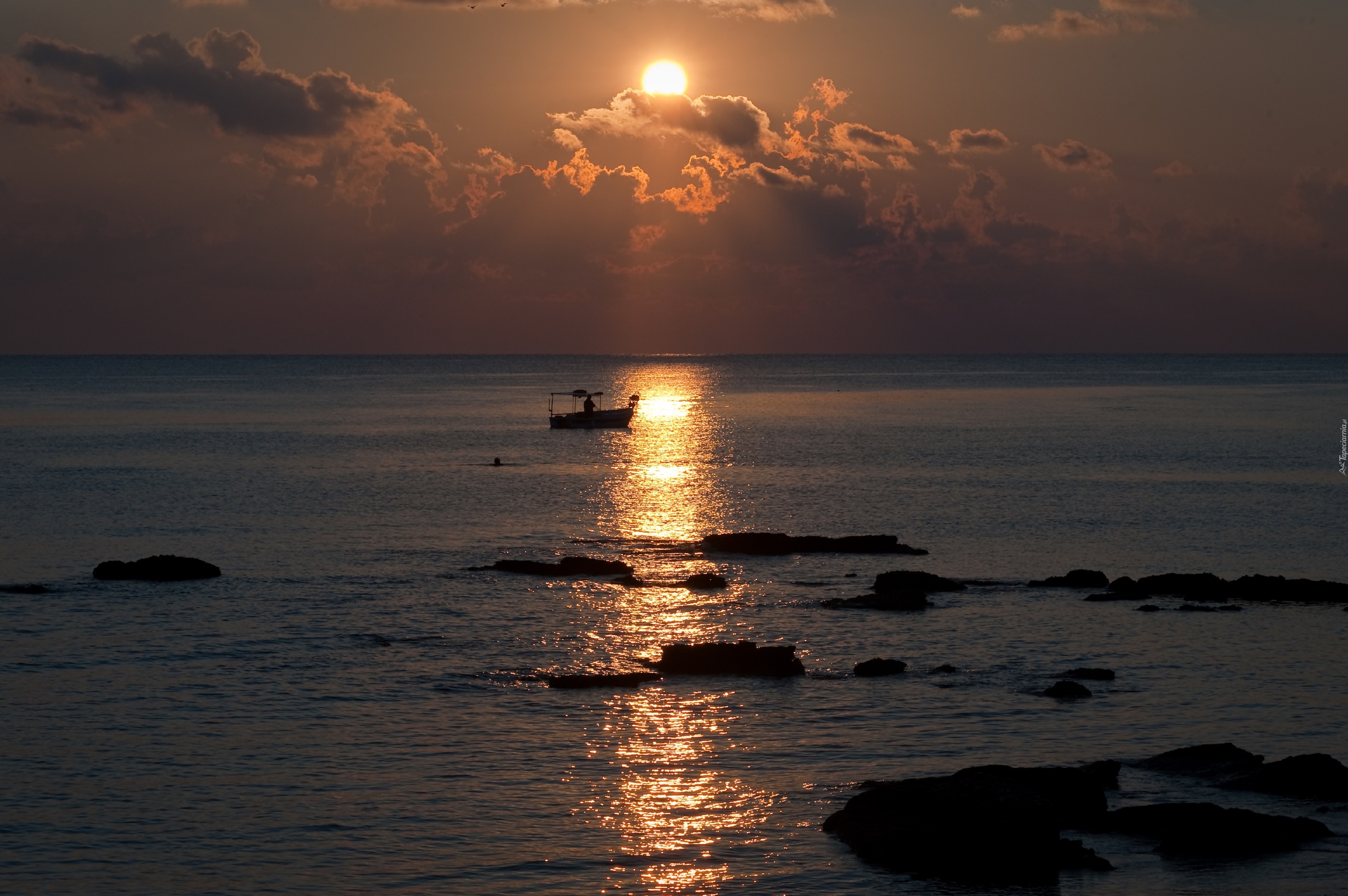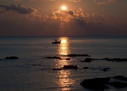 Edytor tapety: Morze, Chmury, Słońce, Odbicie,Łódka
