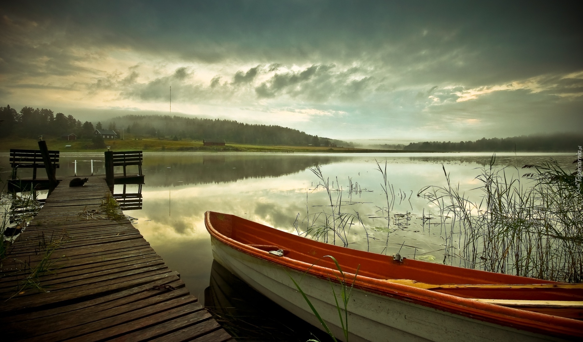 Edytor tapety: Kot, Pomost, Łódź, Jezioro