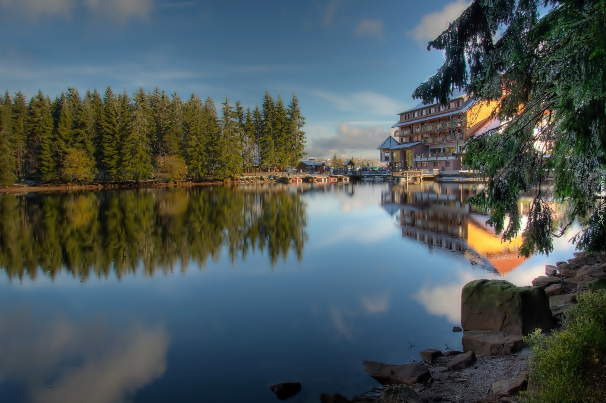 Edytor tapety: Jezioro, Las, Hotel, Niemcy