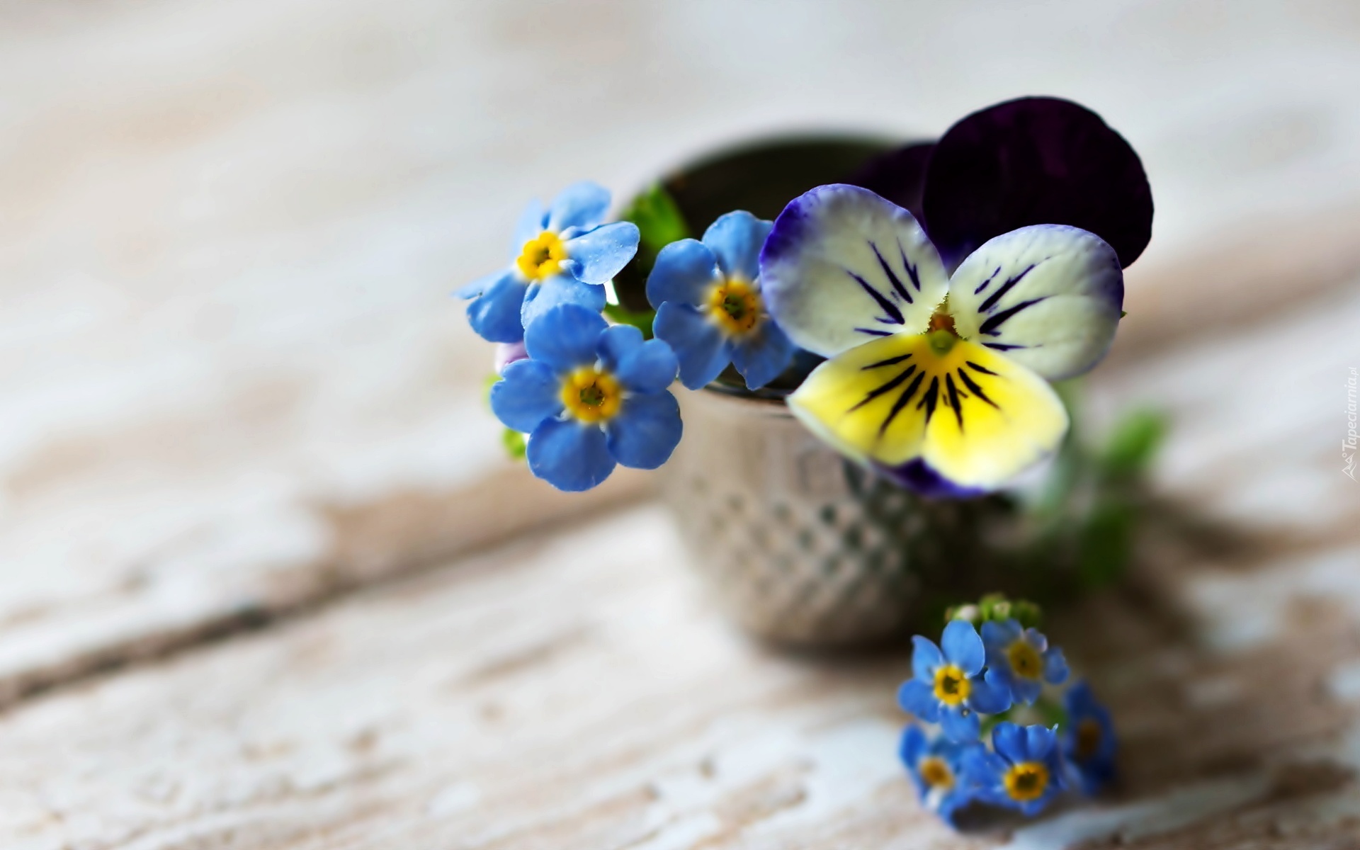 Edytor tapety: Kwiaty, Bukiet, Bratek, Niezapominajki, Doniczka