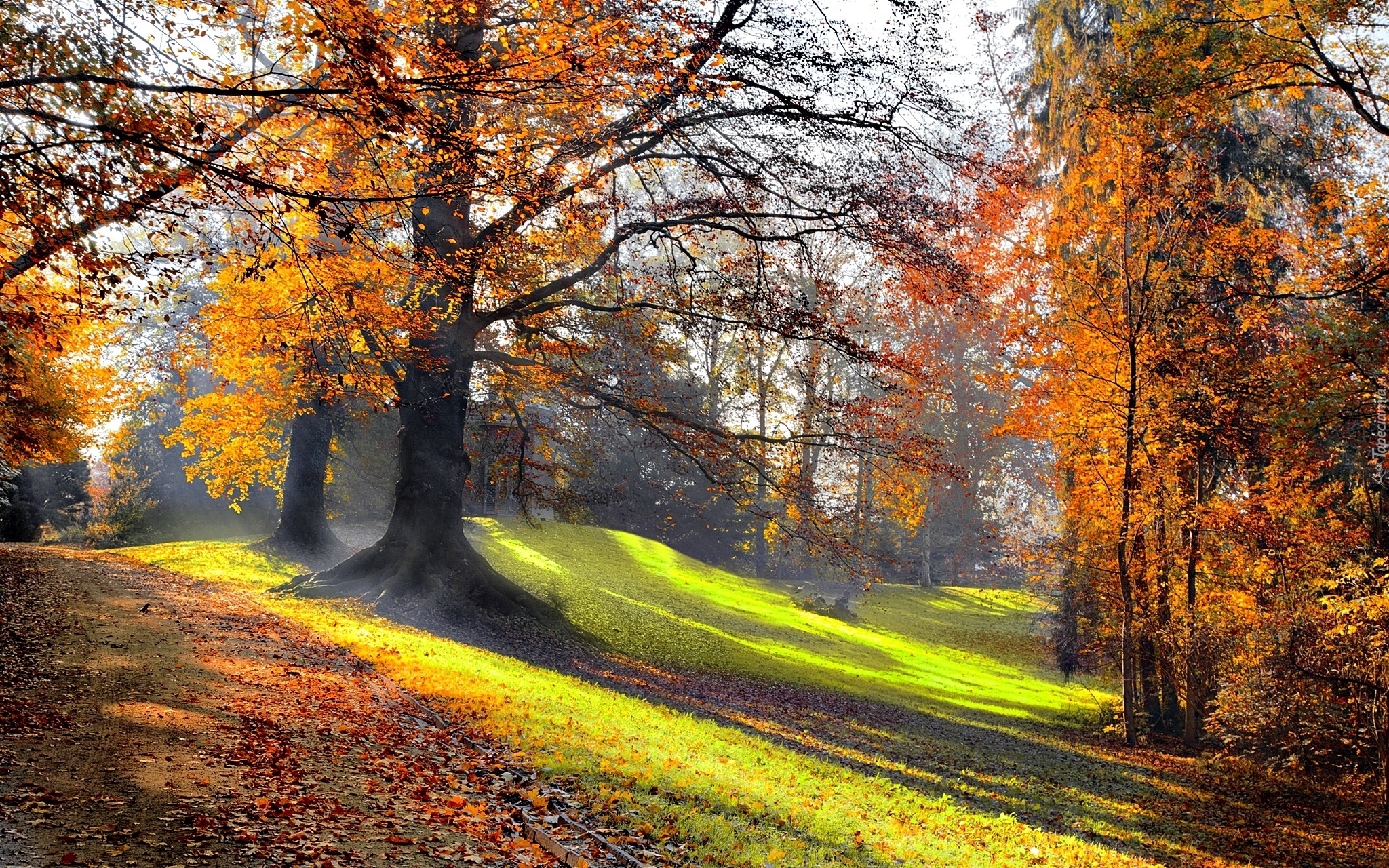 Edytor tapety: Park, Poranek, Przebijające Światło, Jesień