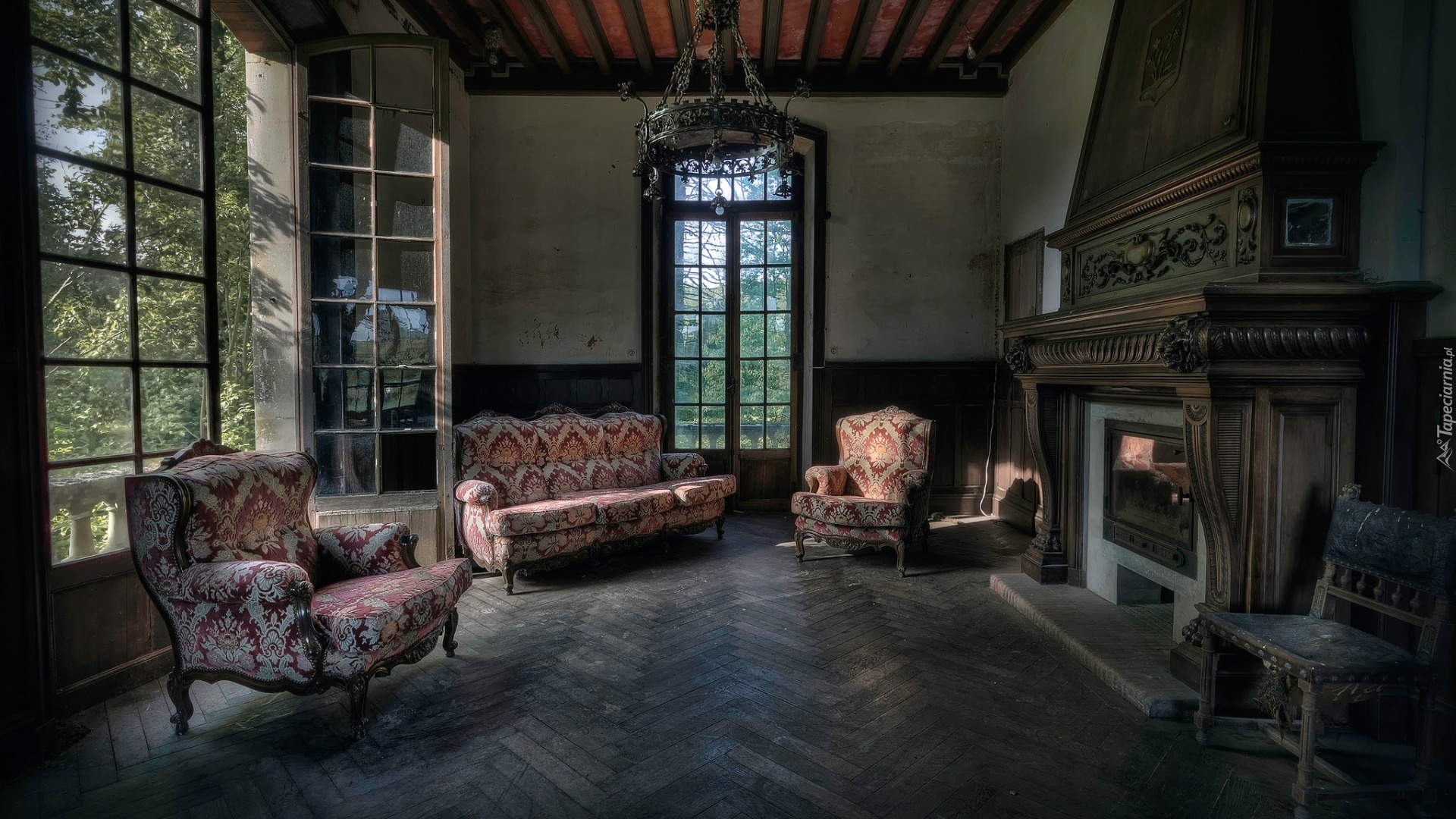 Edytor tapety: Zaniedbany, Pokój, Kominek