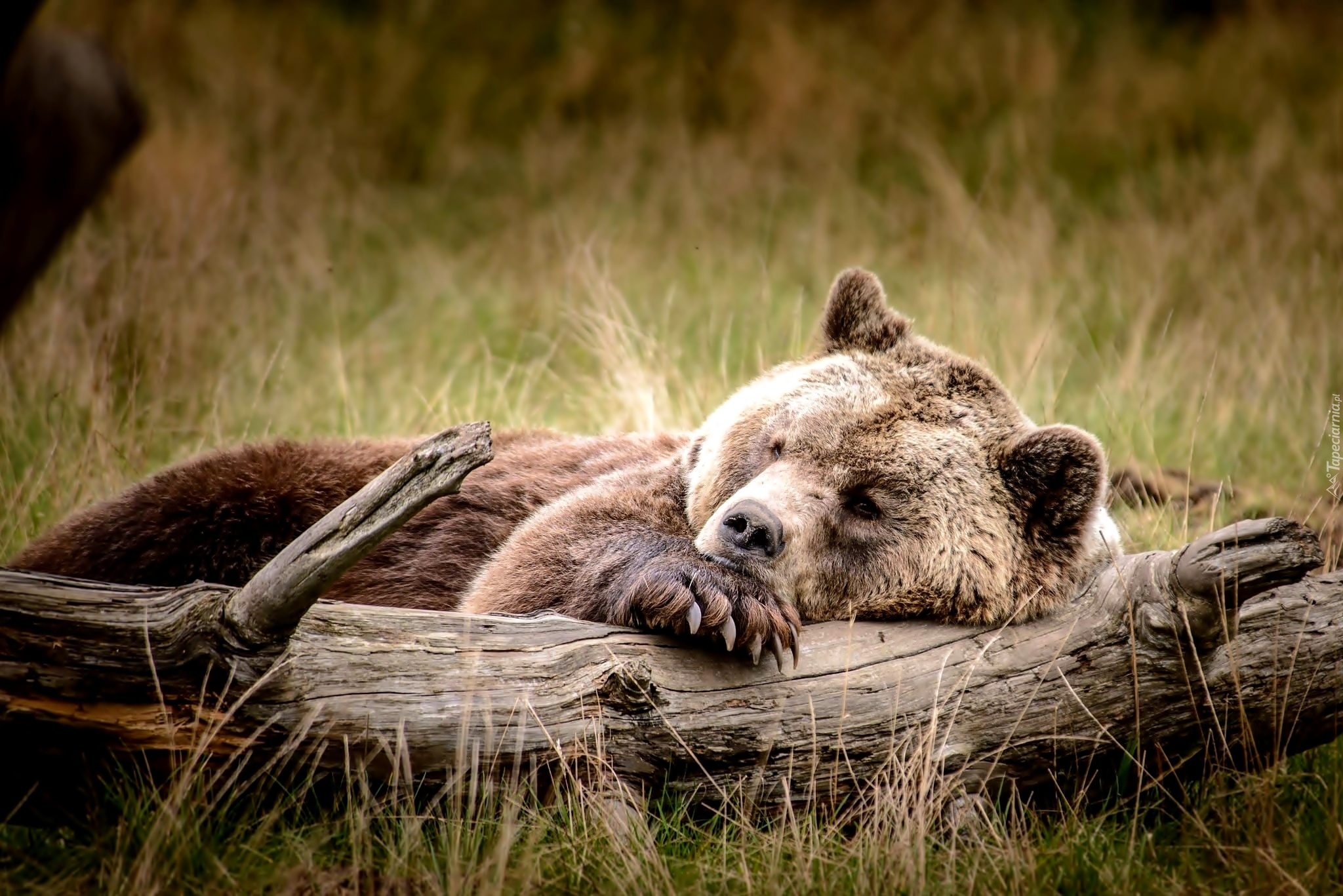 Edytor tapety: Leżący, Niedźwiedź, Kloda