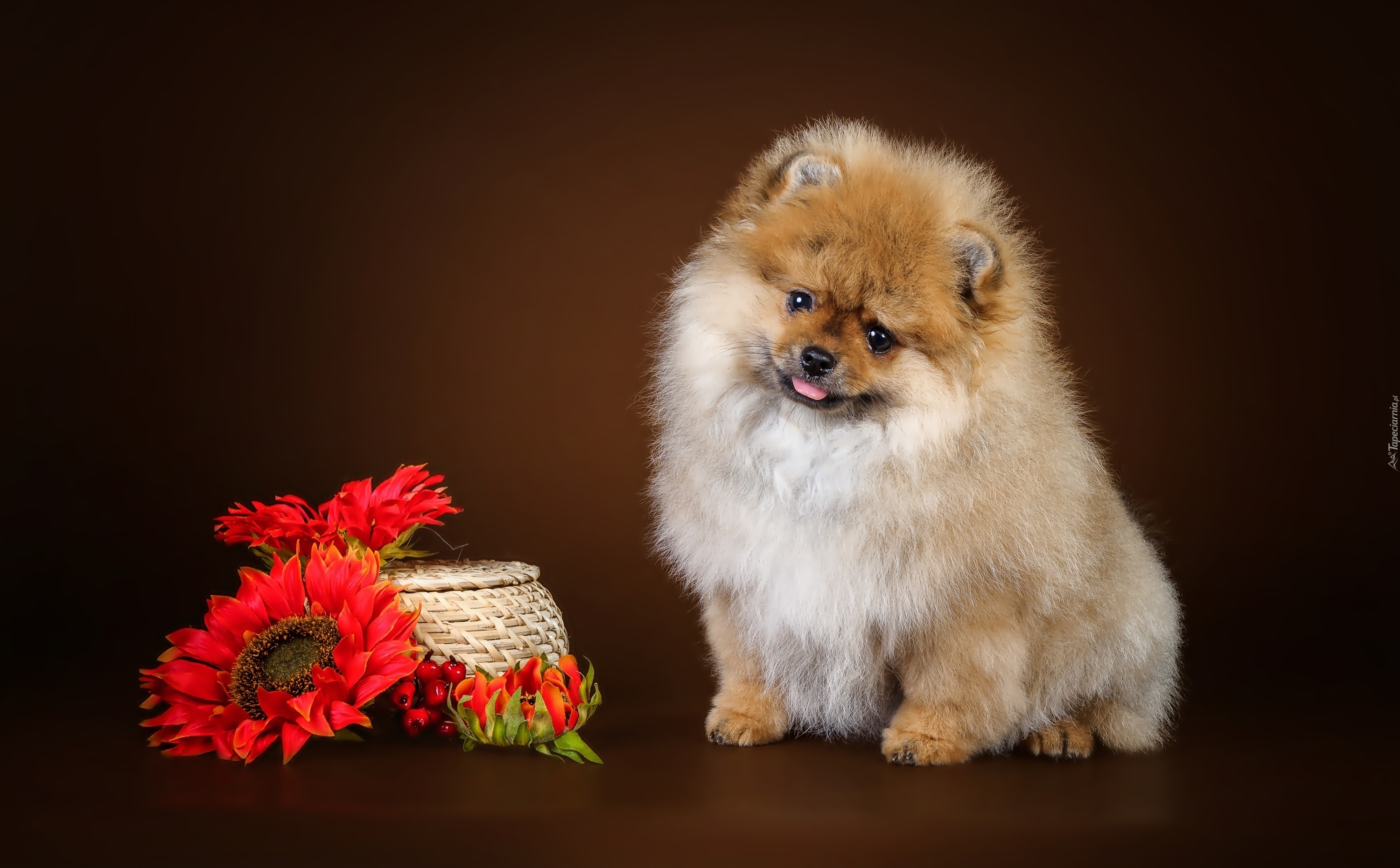 Edytor tapety: Szczeniak, Kwiatki, Koszyczek