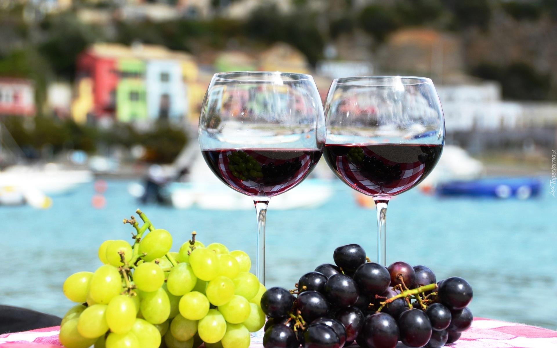 Edytor tapety: Dwa, Kieliszki, Czerwone, Wino, Winogrona