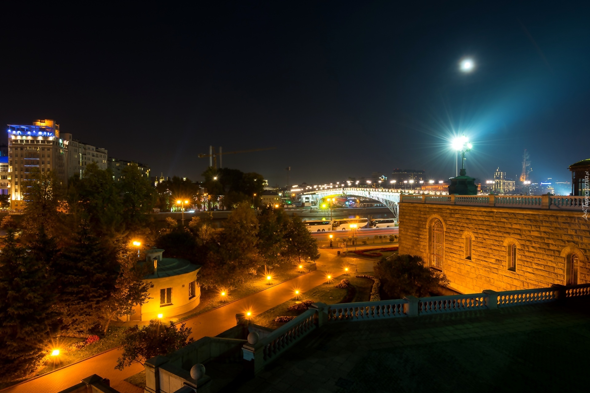 Edytor tapety: Miasto, Nocą, Moskwa, Latarnie, Ulica, Budynki