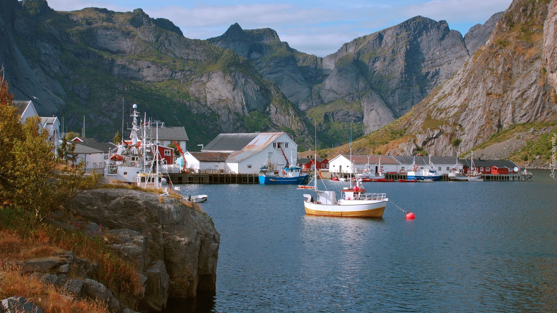 Edytor tapety: Port, Góry, Statki