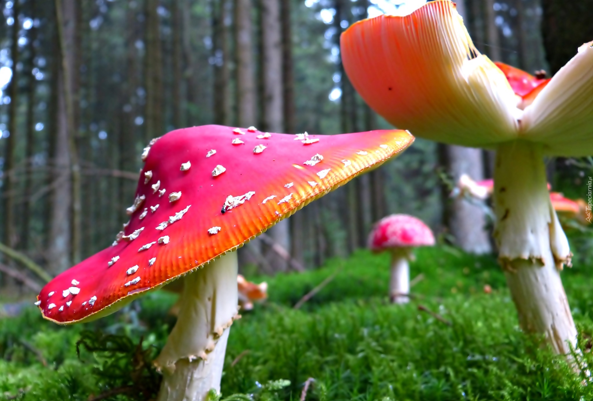 Edytor tapety: Grzyby, Muchomory, Ściółka, Las