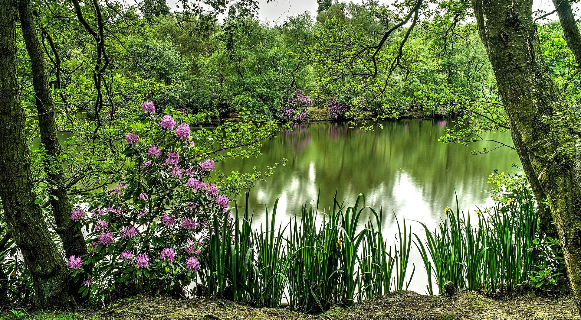 Edytor tapety: Rzeka, Drzewa, Trawa, Kwiaty