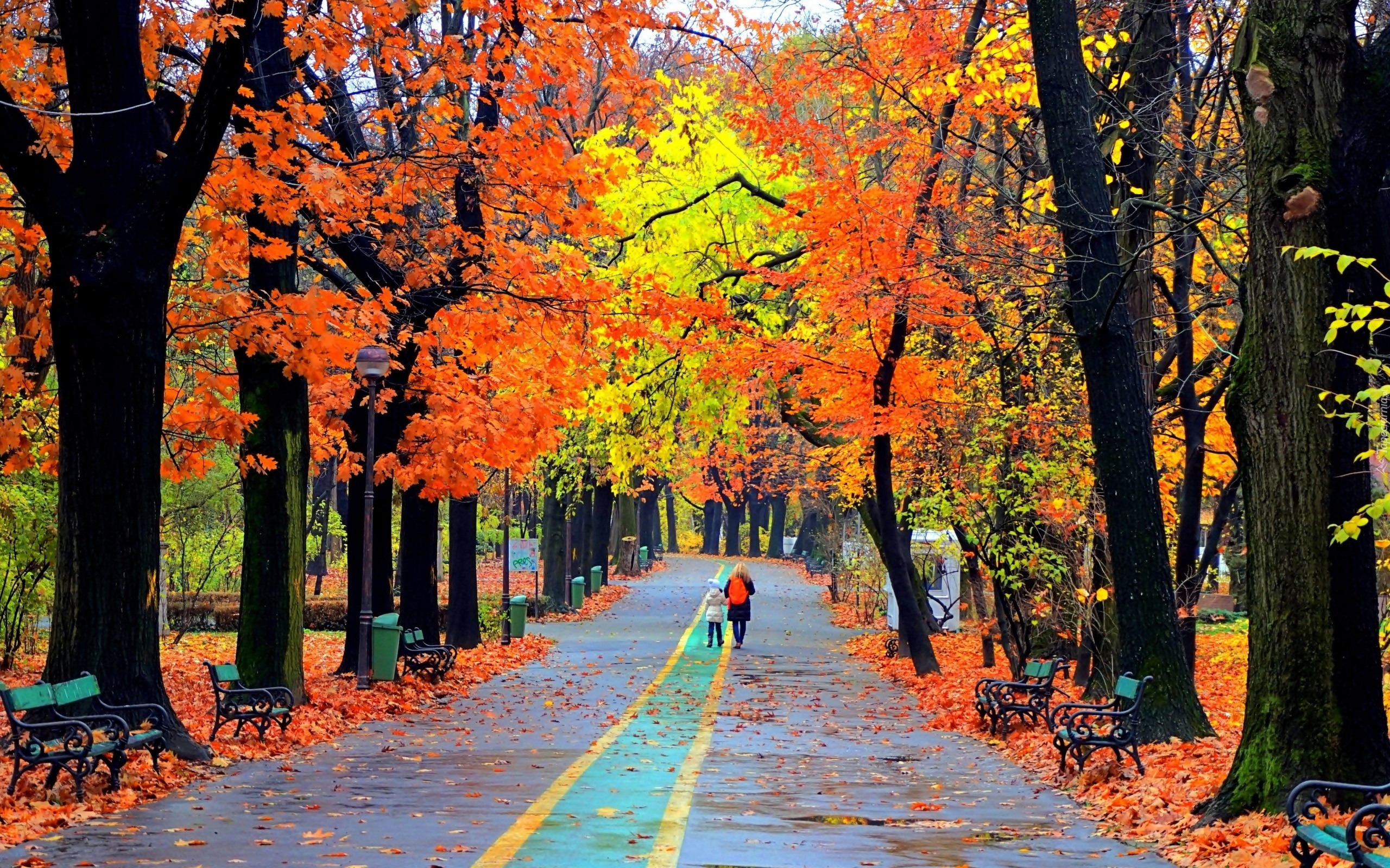 Edytor tapety: Park, Alejki, Ławki, Ludzie, Jesień