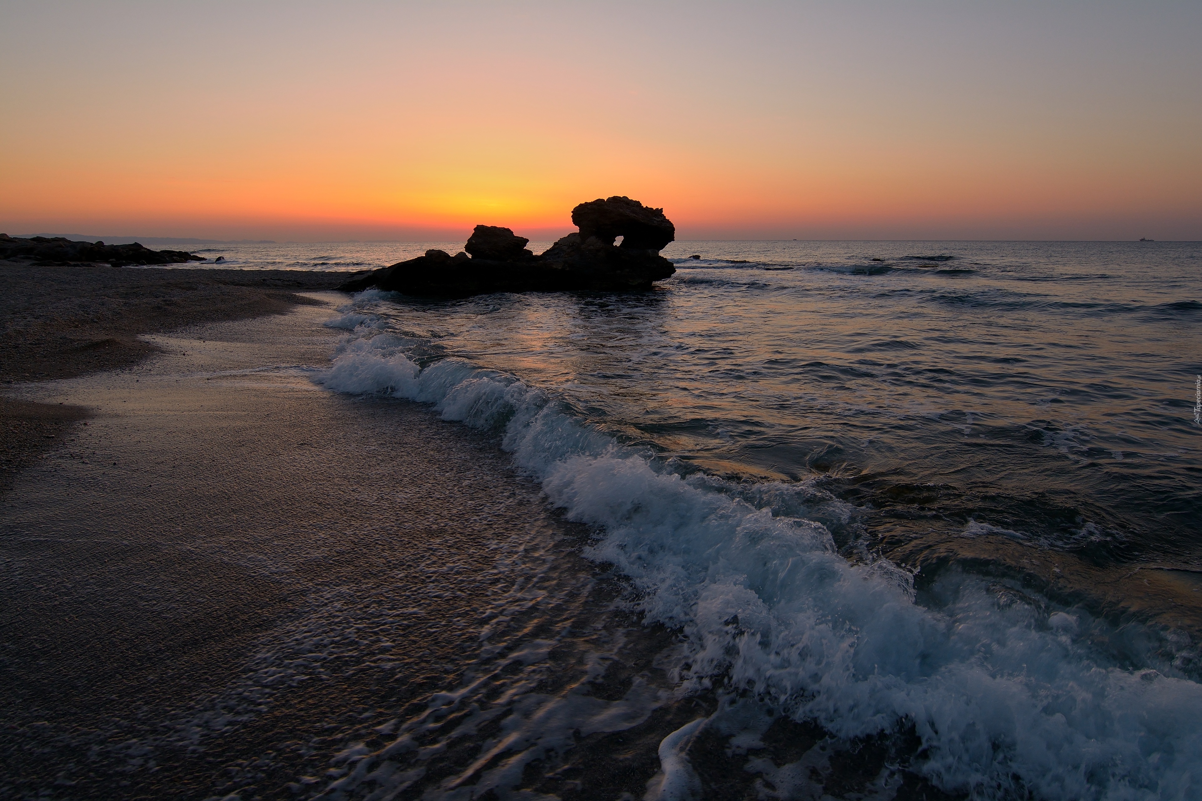 Edytor tapety: Morze, Fale,Skałki, Zachód, Słońca
