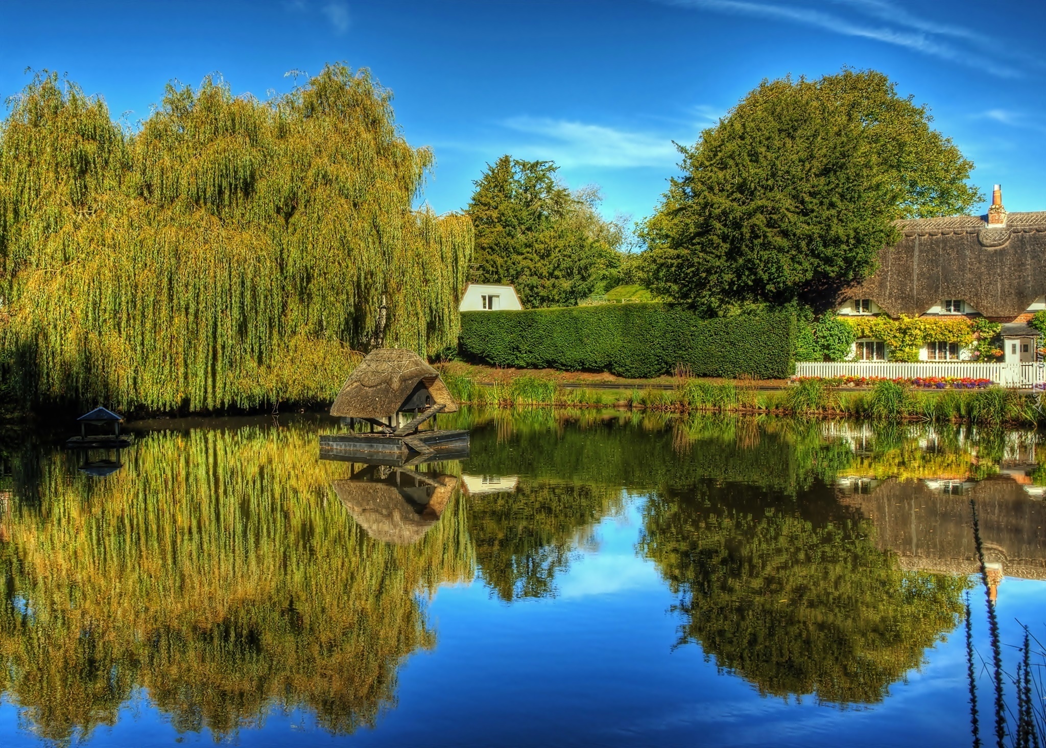 Edytor tapety: Staw, Drzewa, Dom, Wieś Crawley, Anglia