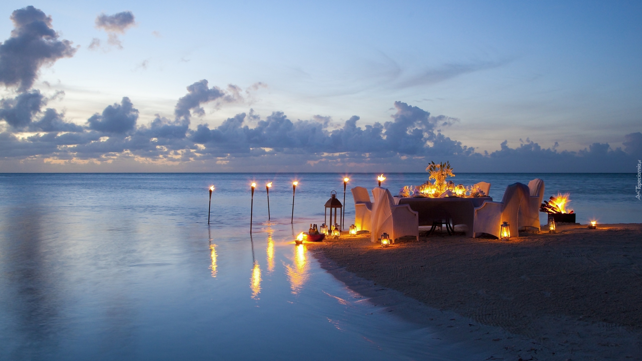 Edytor tapety: Morze, Chmury, Romantycznie, Stół, Kolacja