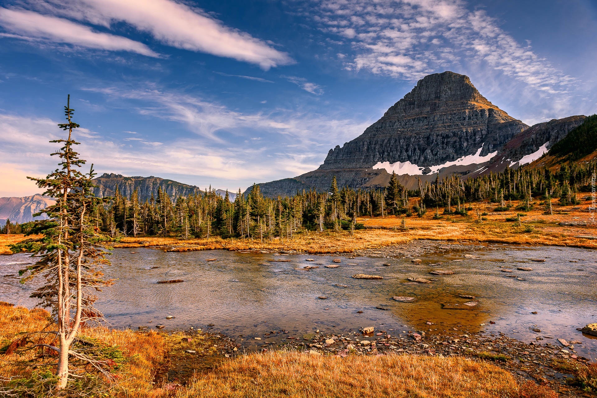 Edytor tapety: Rzeczka, Drzewa, Góry,Kamienie