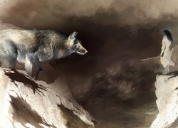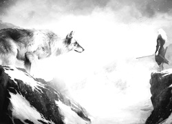Edytor tapety: Fantasy, Zima, Kobieta, Wilk