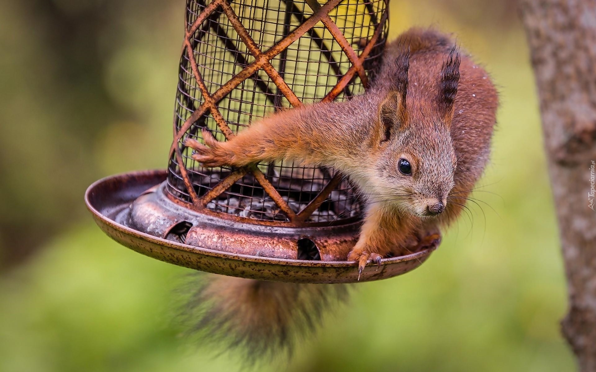 Edytor tapety: Wiewiórka, Karmnik, Drzewo, Park