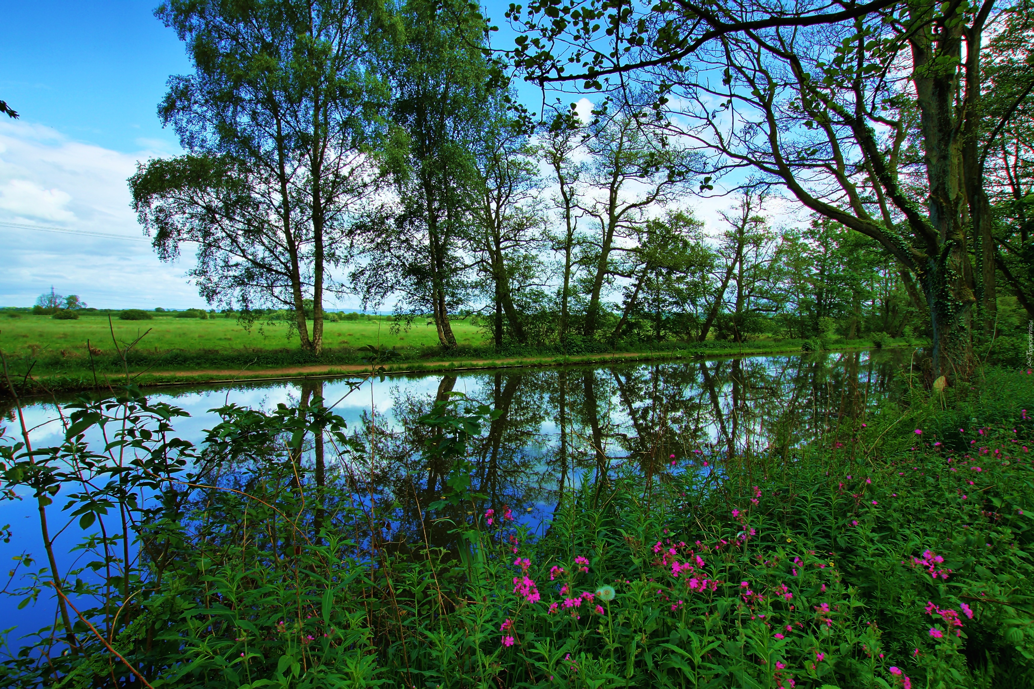 Edytor tapety: Rzeka, Drzewa, Kwiaty, Rosliny